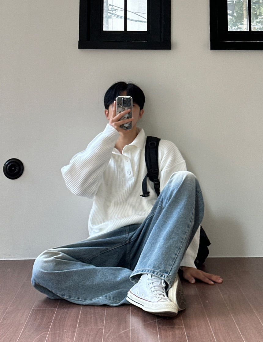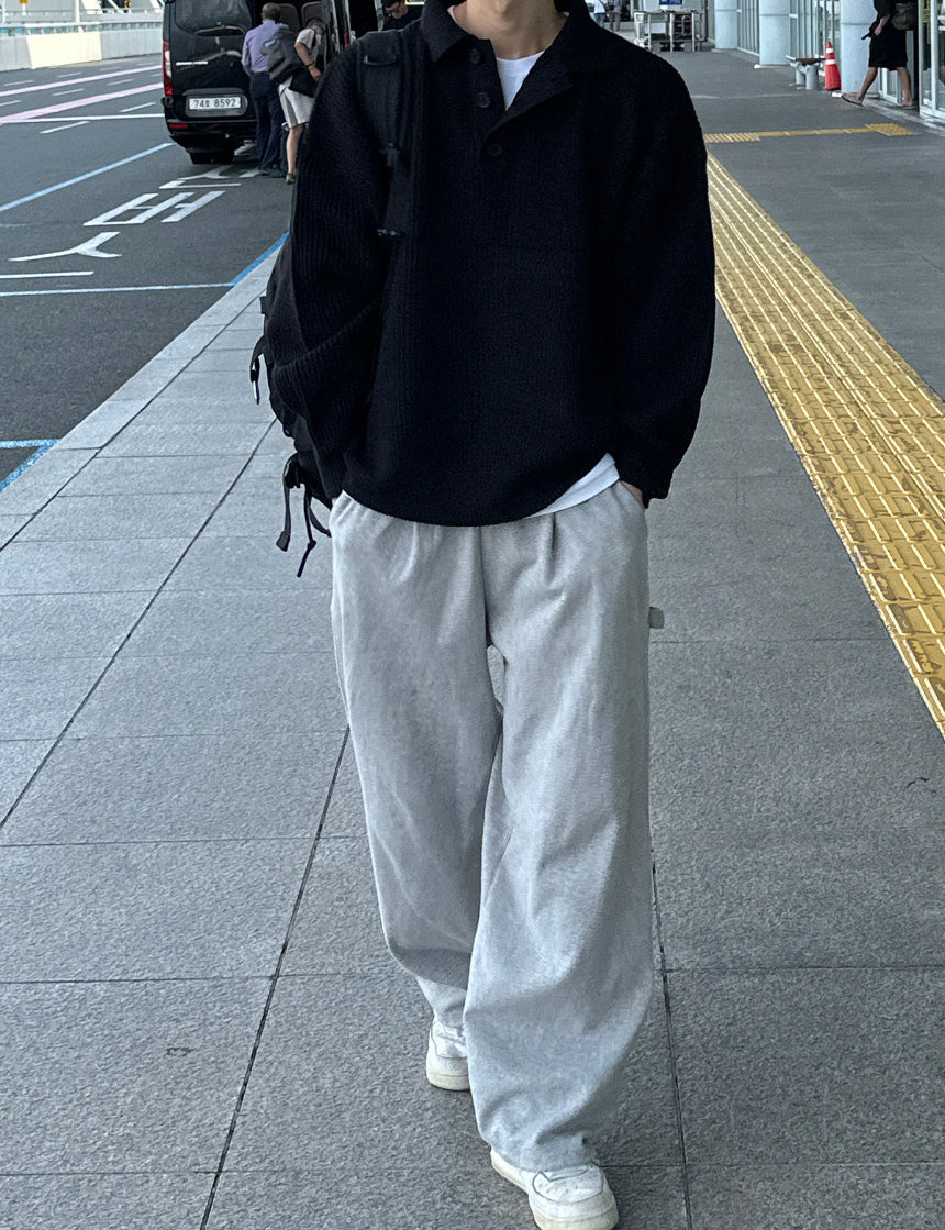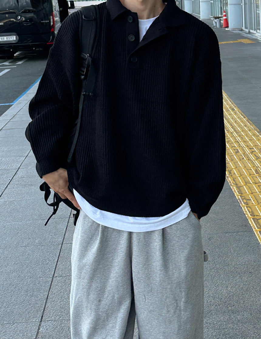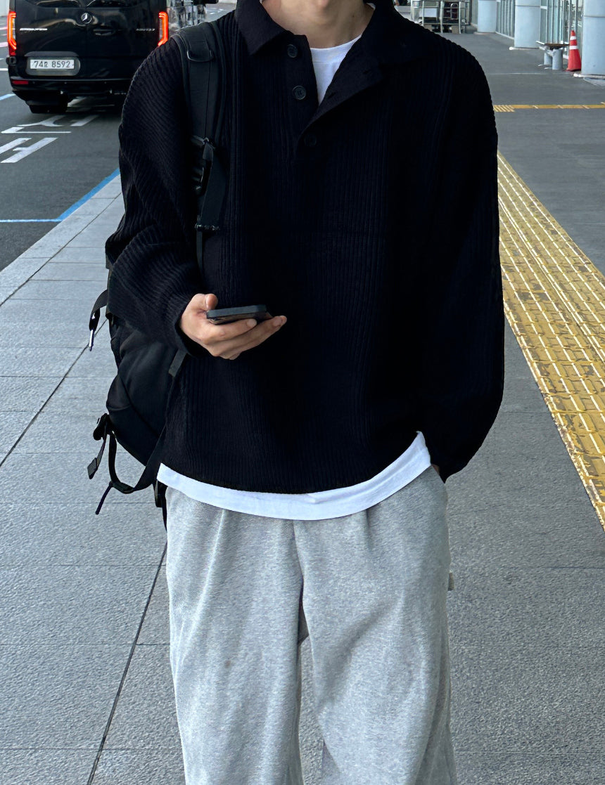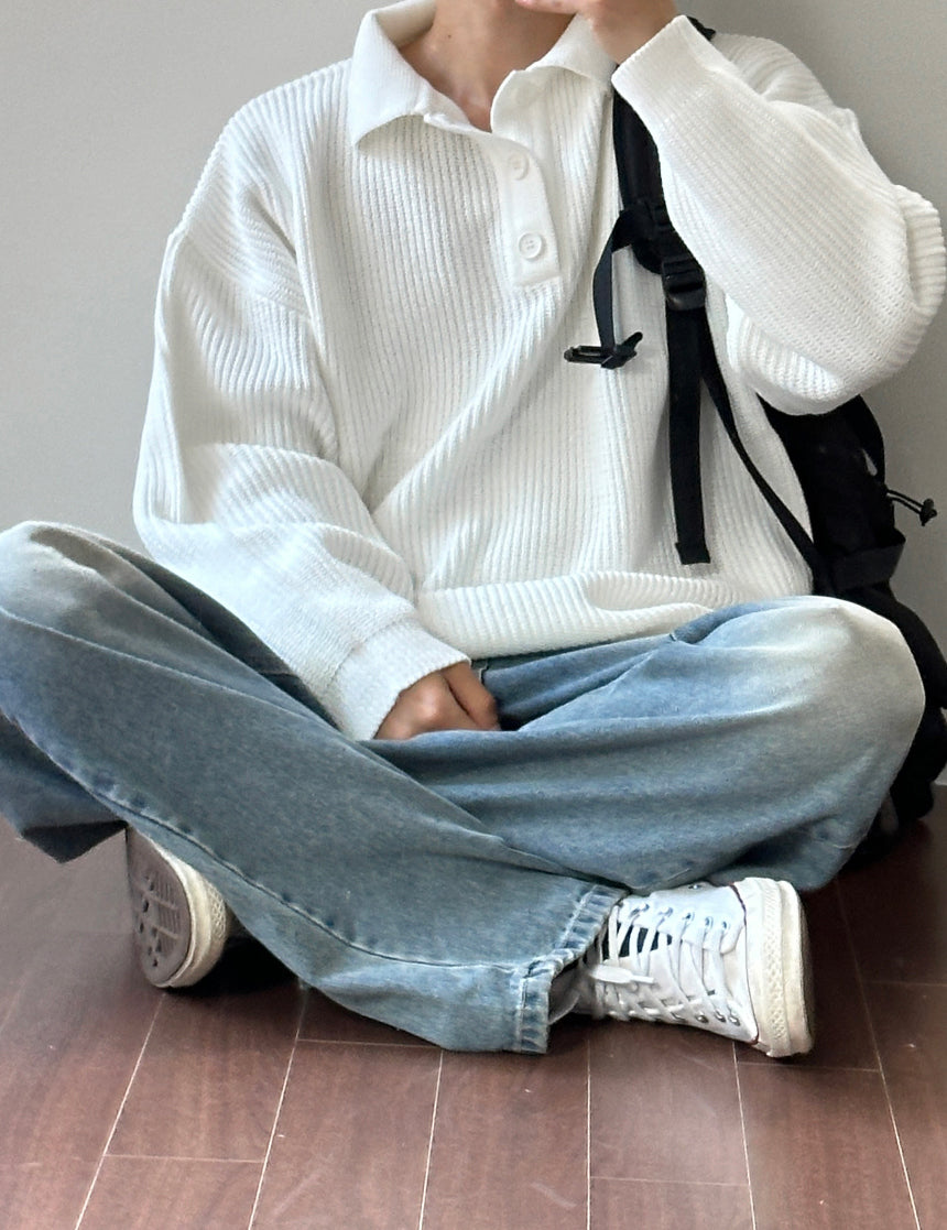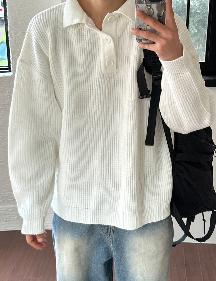 羅紋 翻領 鈕扣 針織衫 / 5色