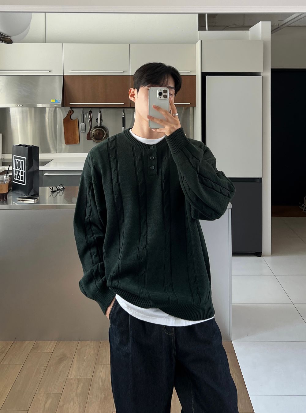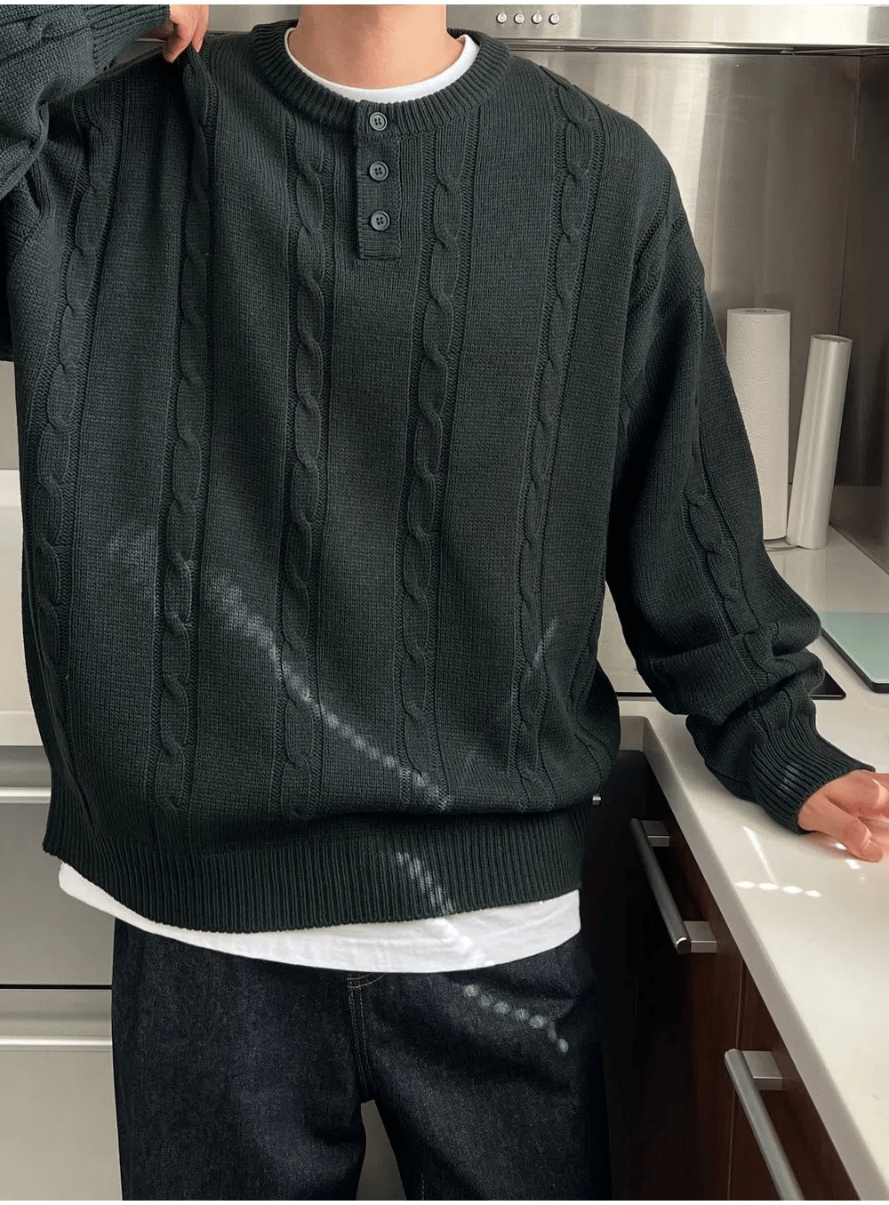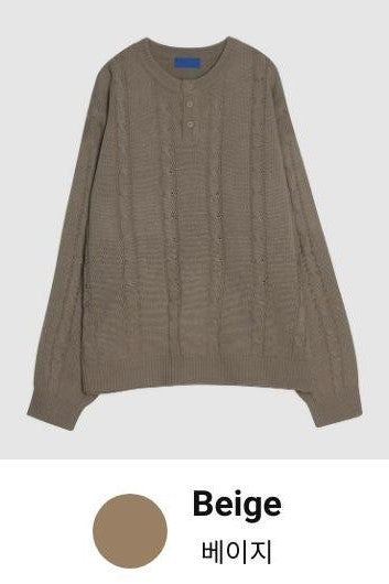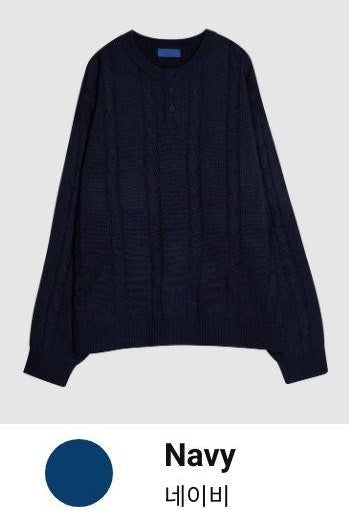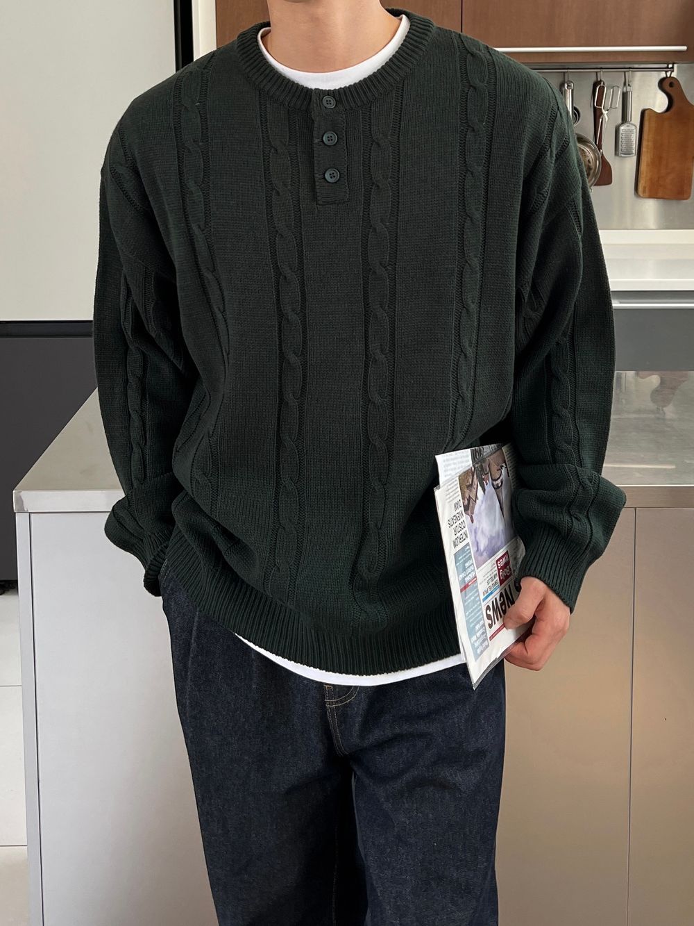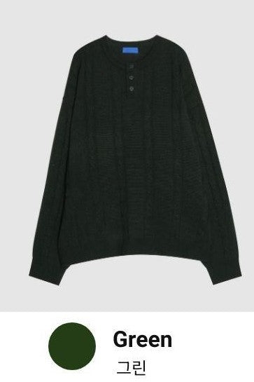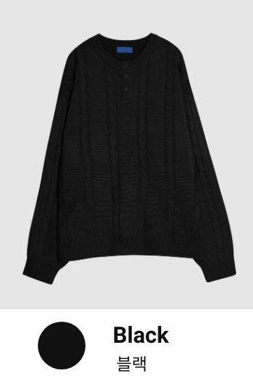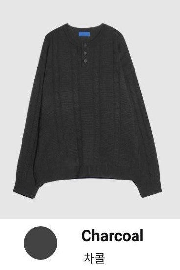 寬鬆 落肩 羅紋 亨利領 針織衫 / 5色