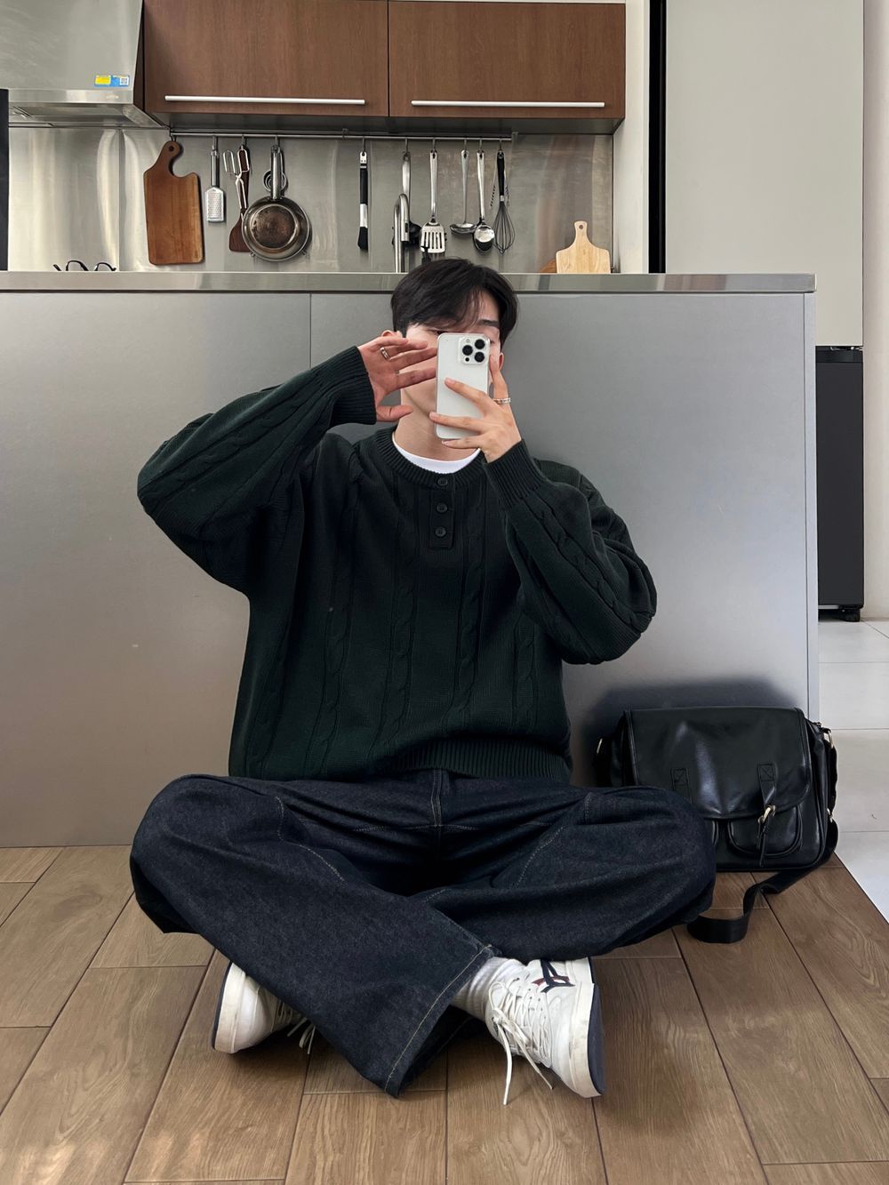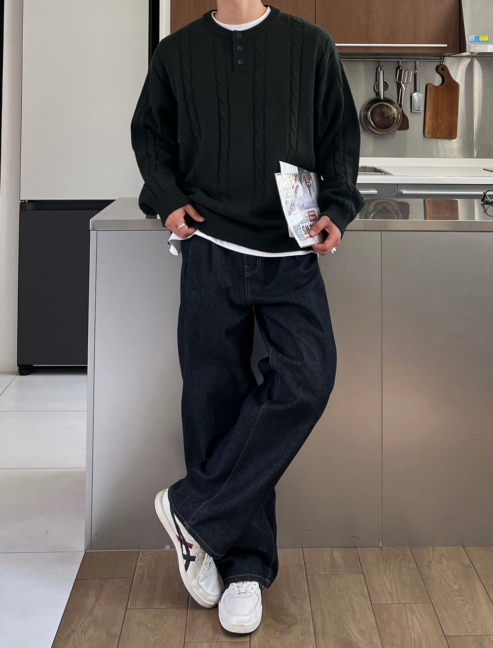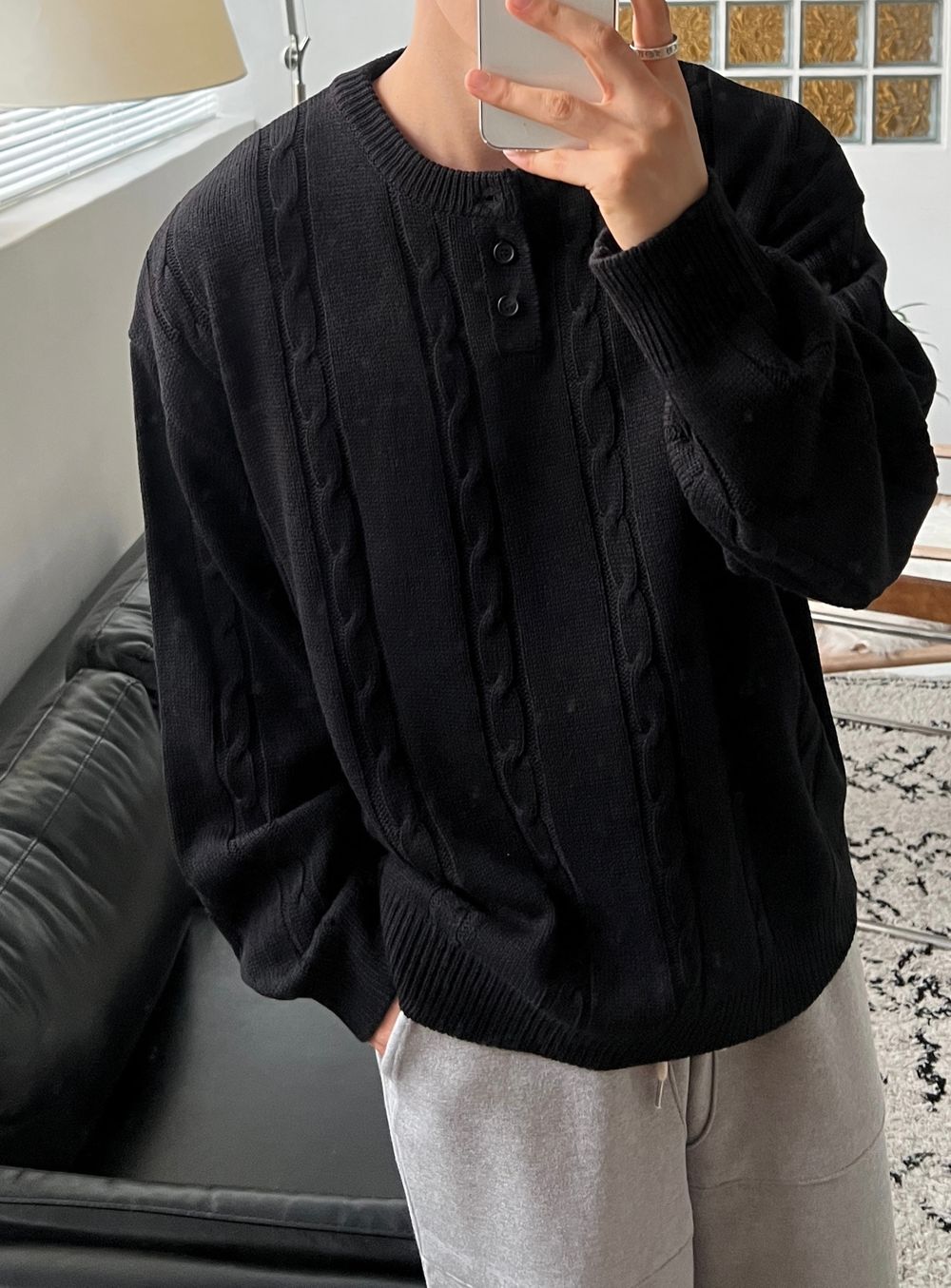 寬鬆 落肩 羅紋 亨利領 針織衫 / 5色