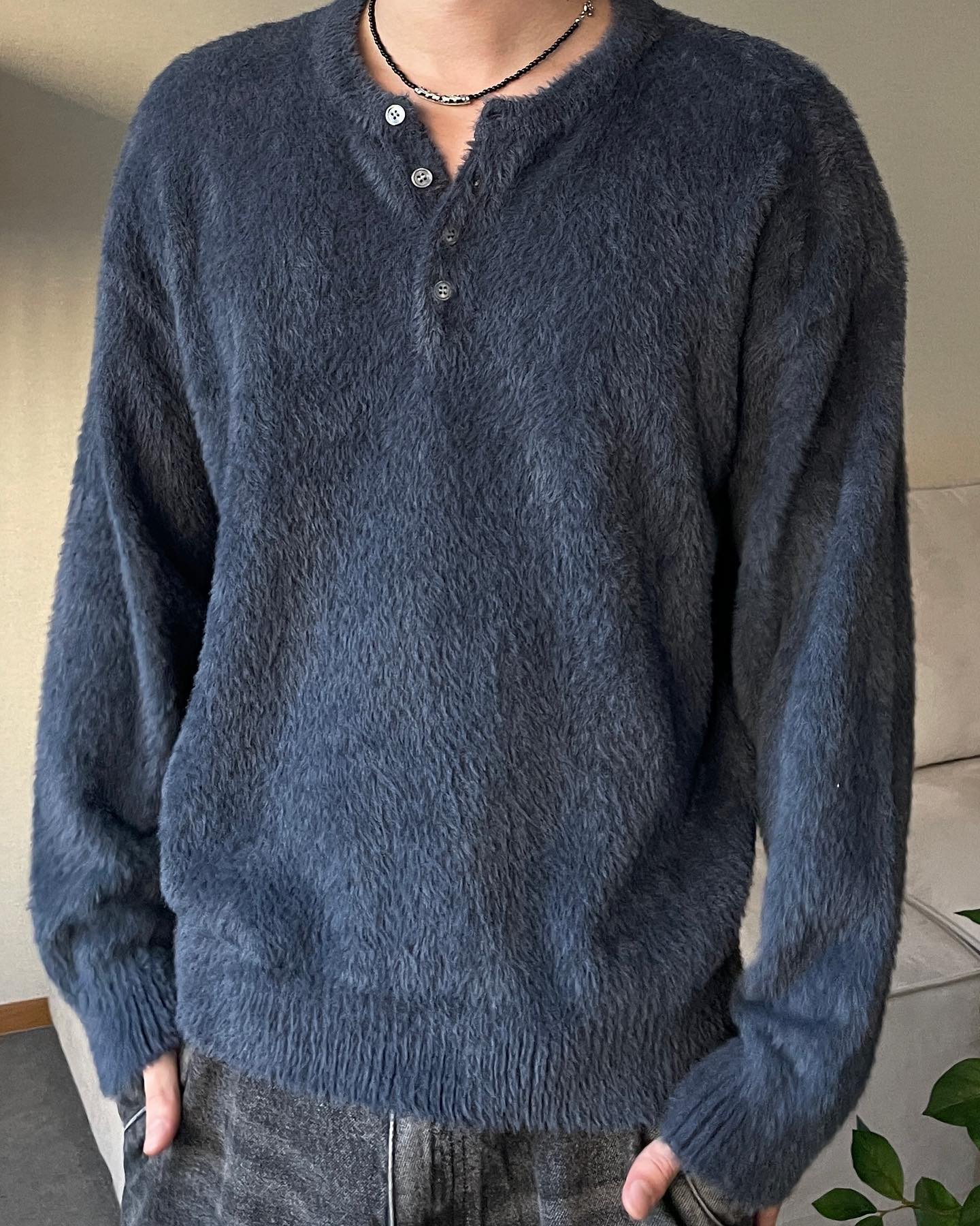 簡約 質感 馬海毛 亨利領 針織衫 / 6色