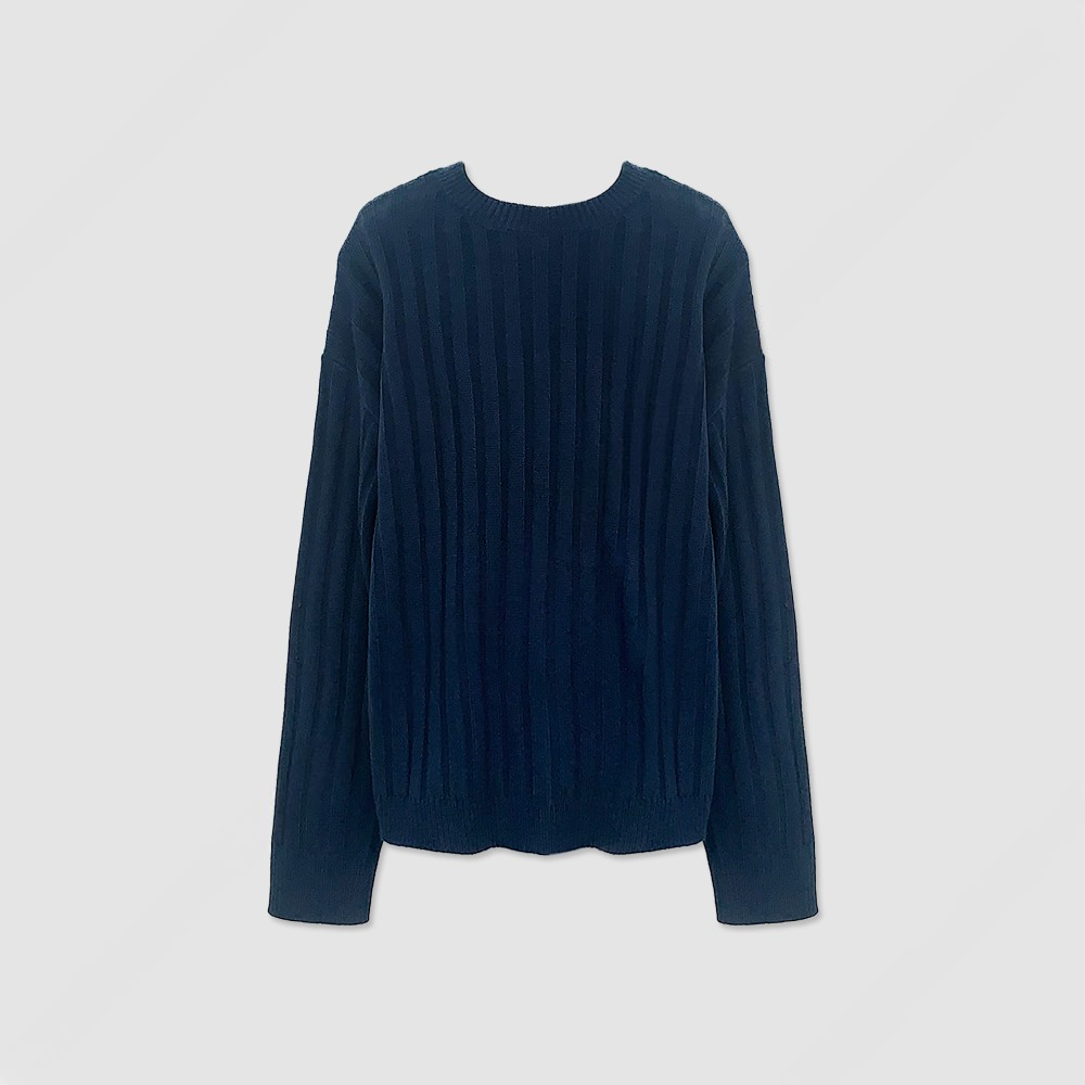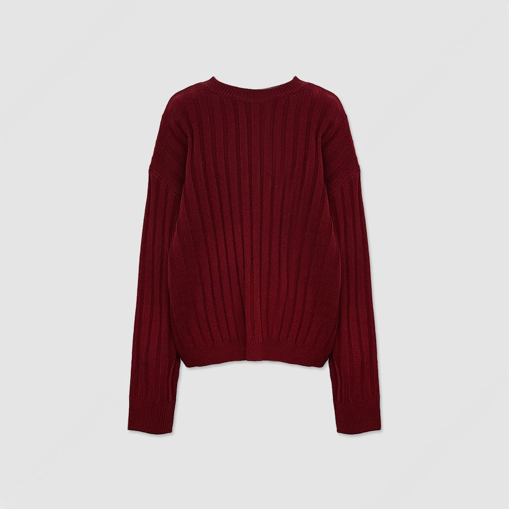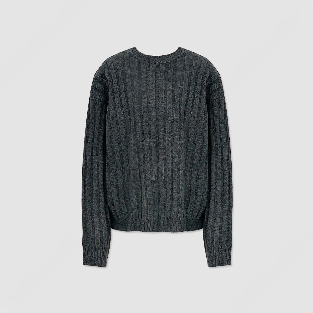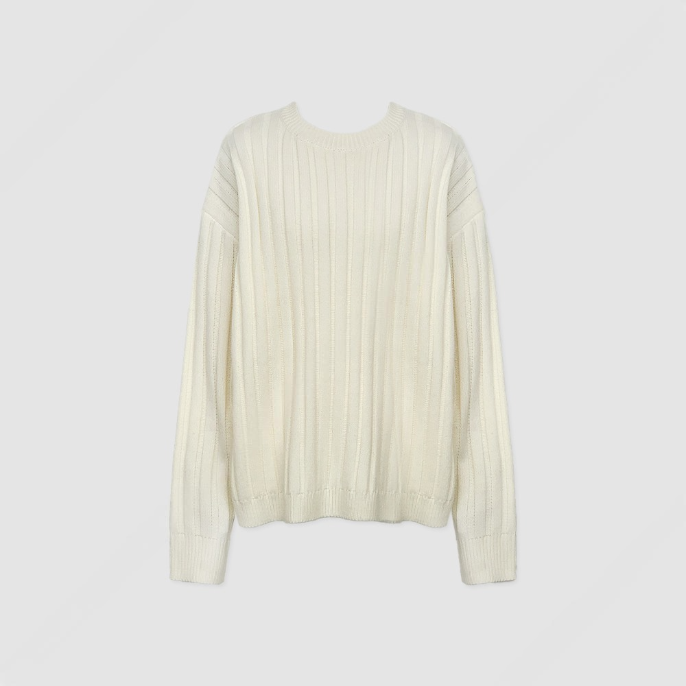 寬鬆 直坑條紋 圓領 針織上衣 / 5色