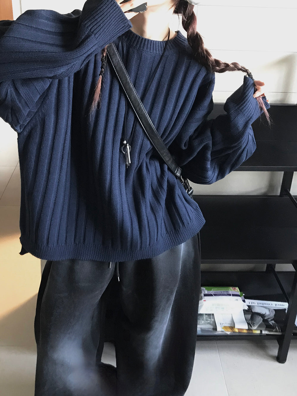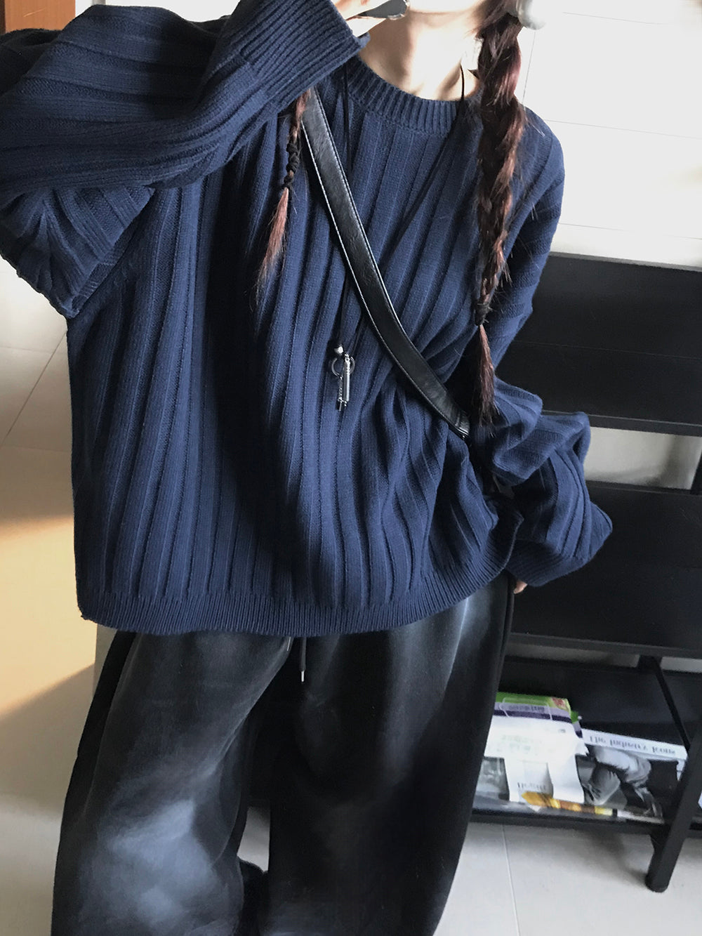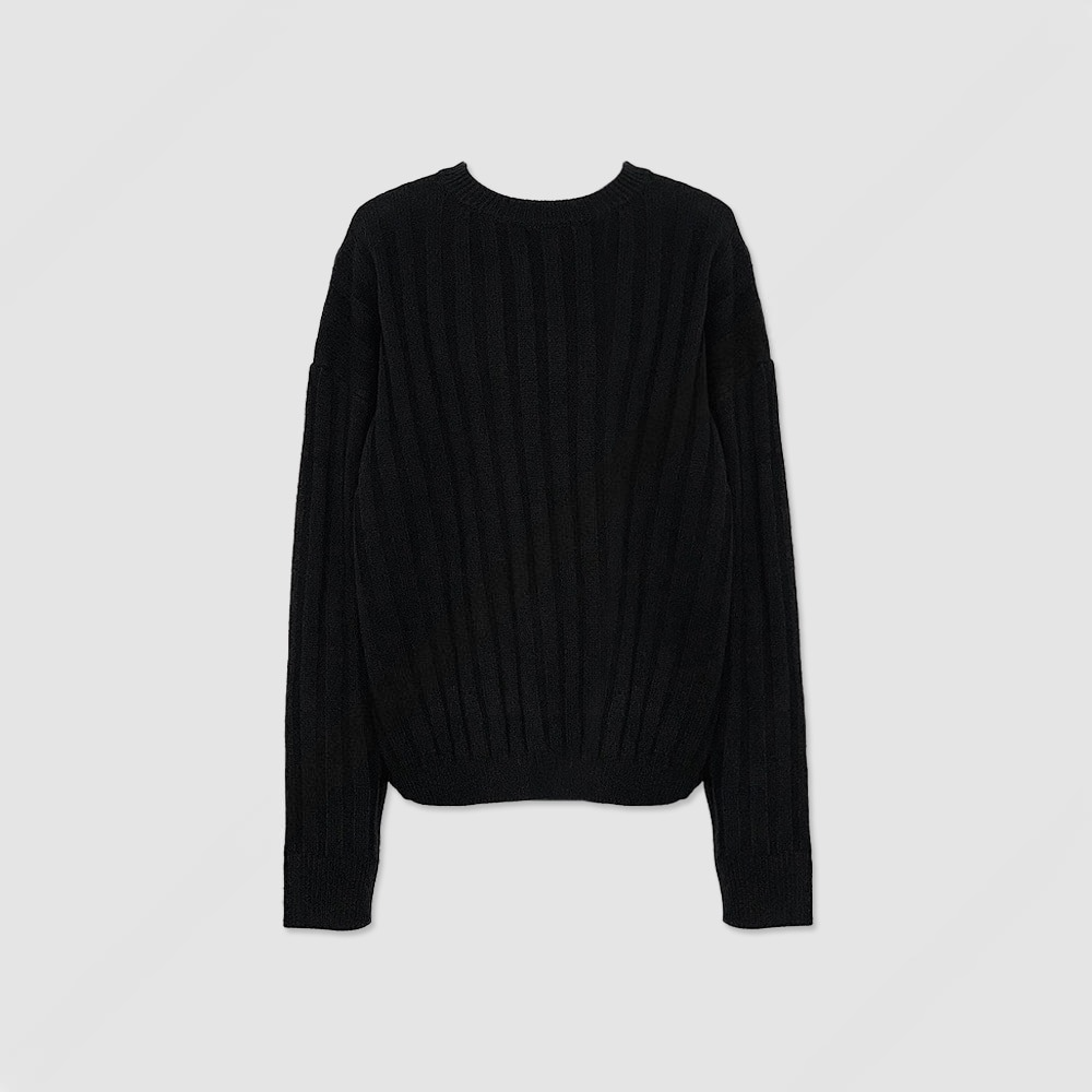 寬鬆 直坑條紋 圓領 針織上衣 / 5色