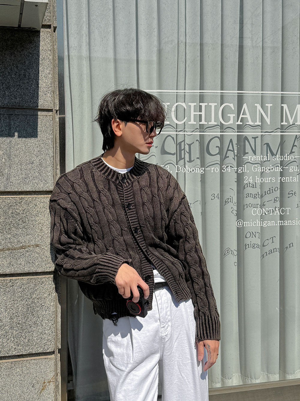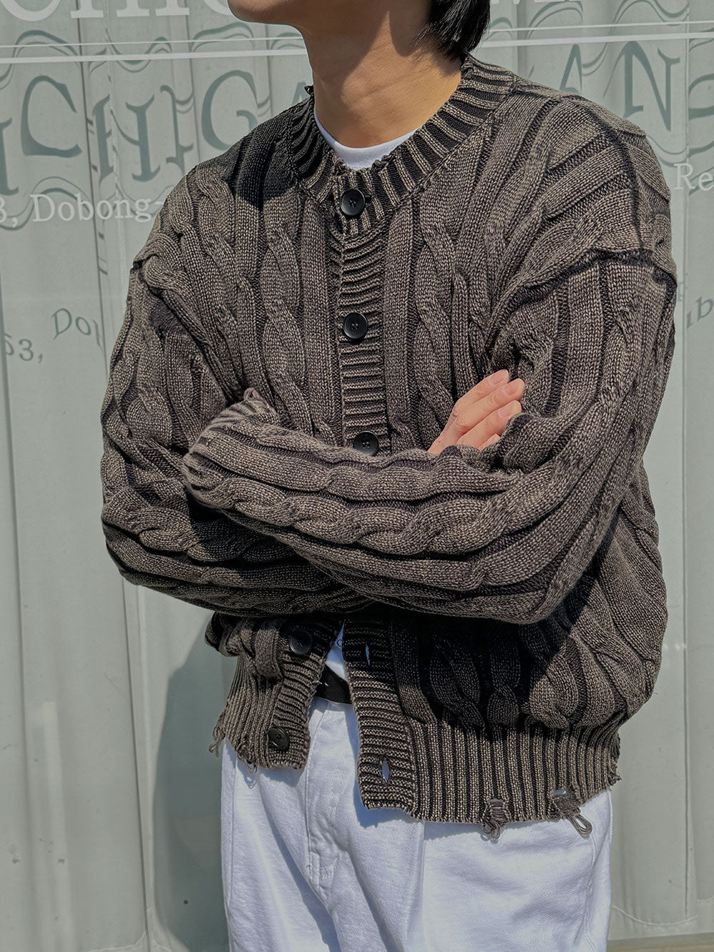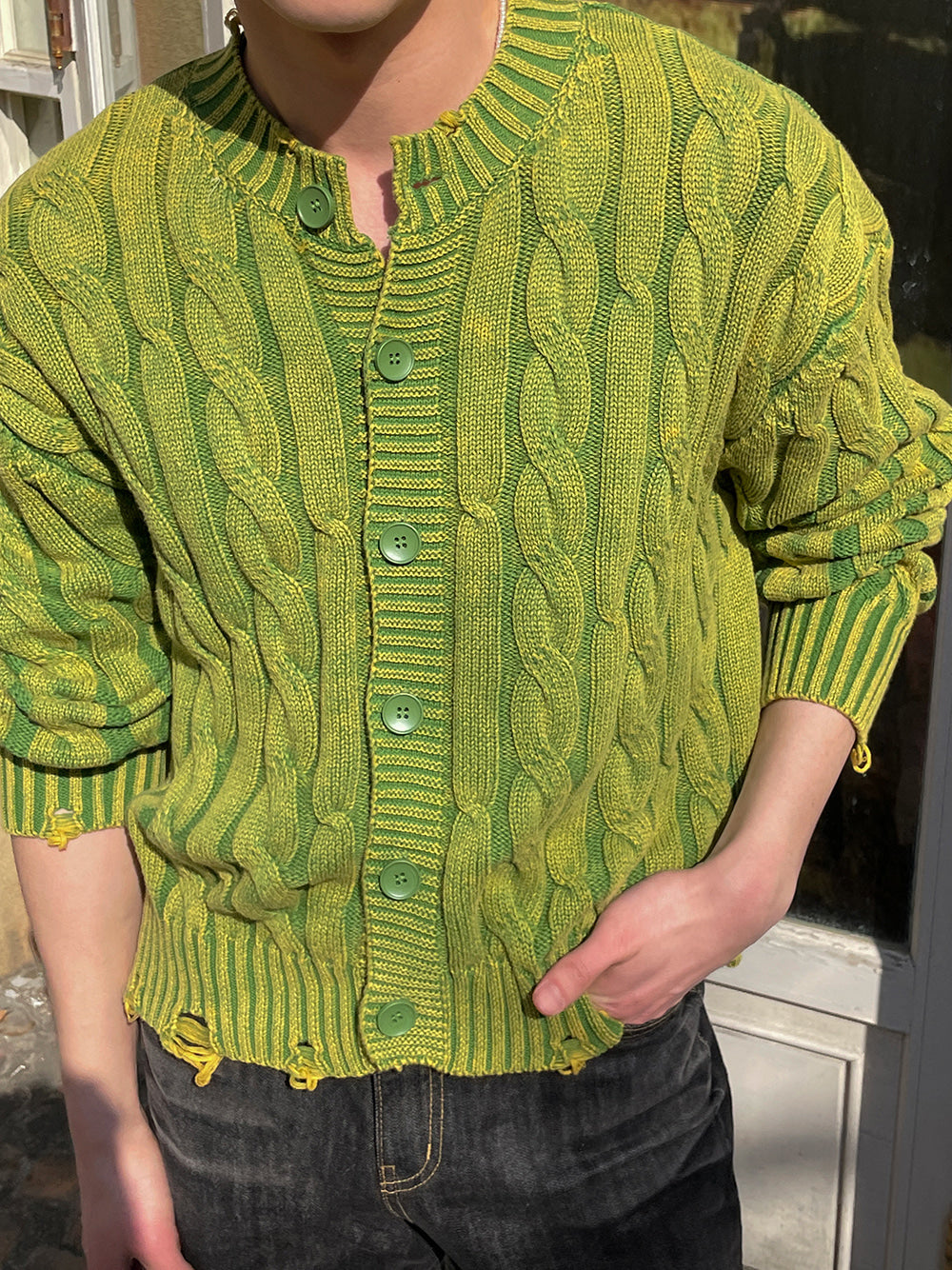 仿舊 提花 破壞 短版 針織外套 / 4色