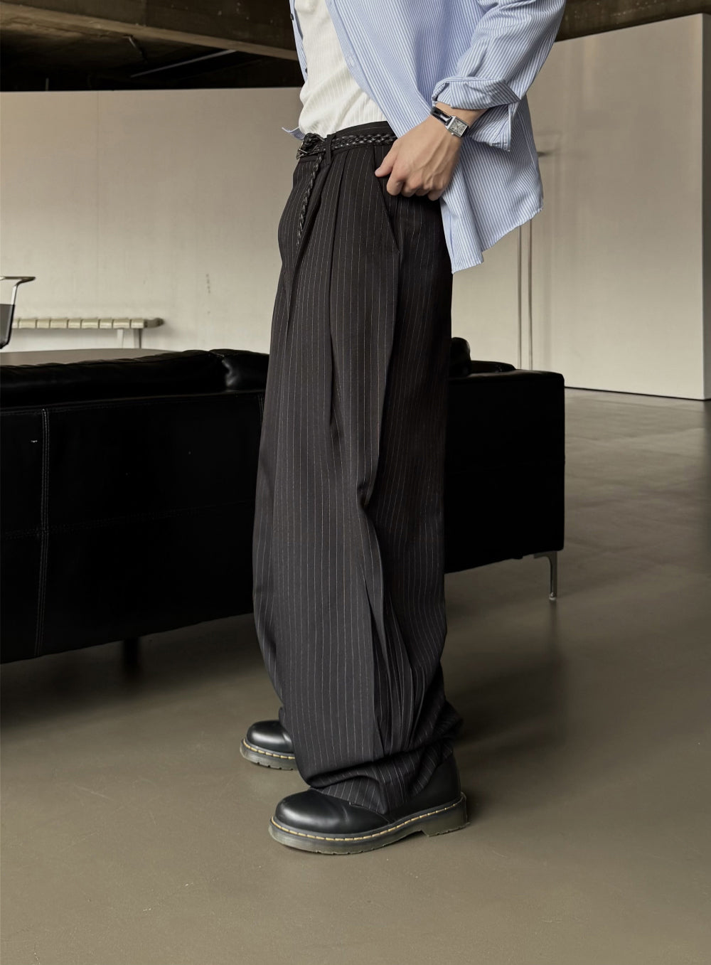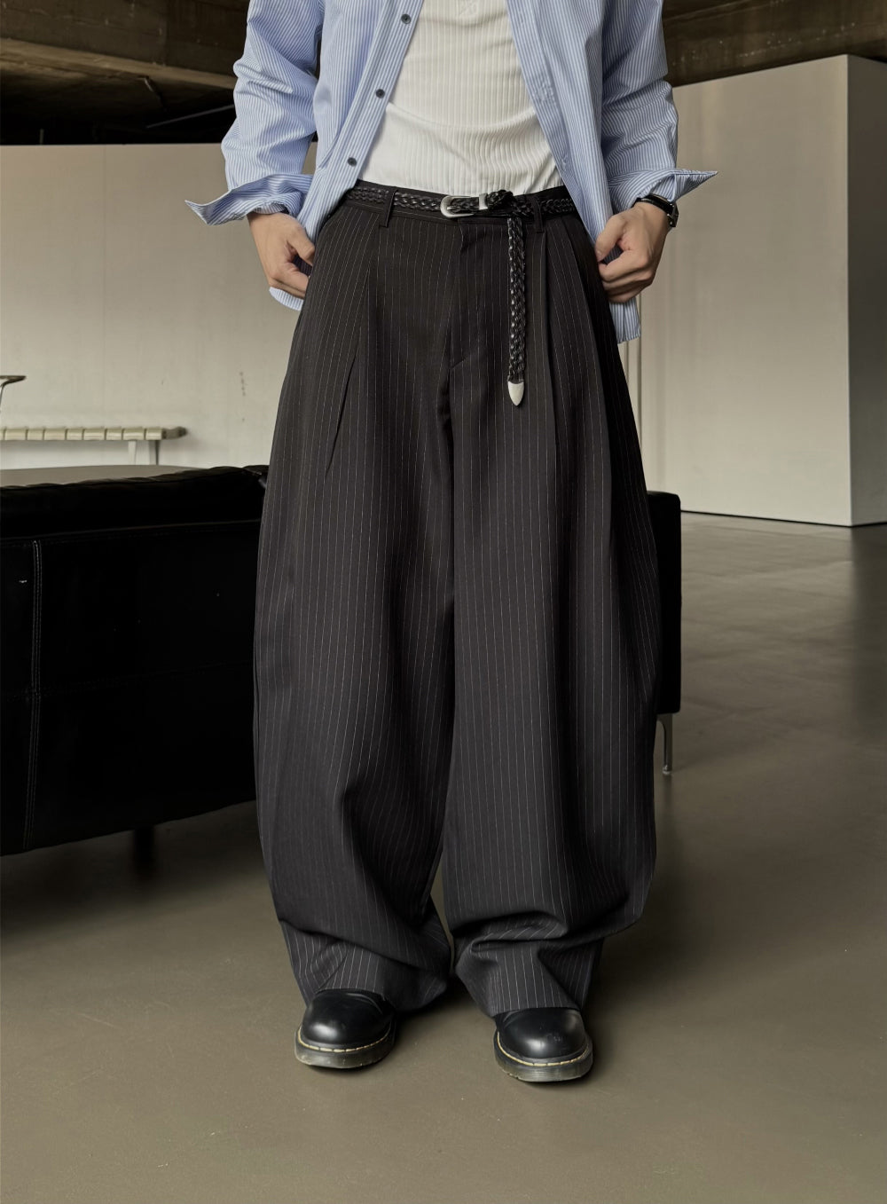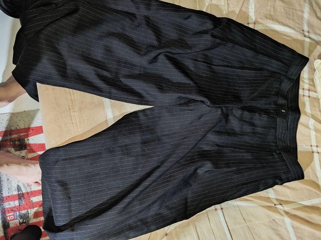 弧形 條紋 打褶 彎刀 西裝褲 / 2 色