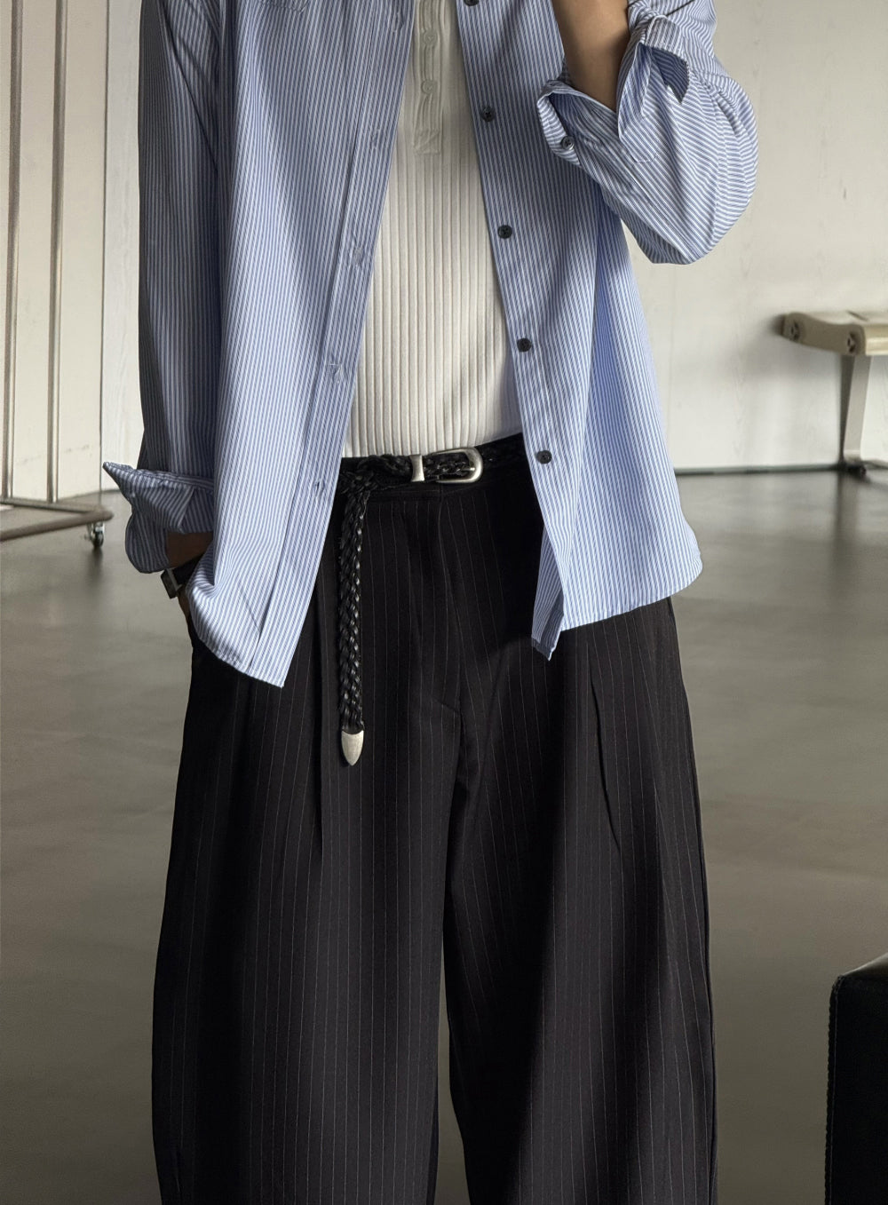 ✔ 條紋細節設計,增添造型亮點