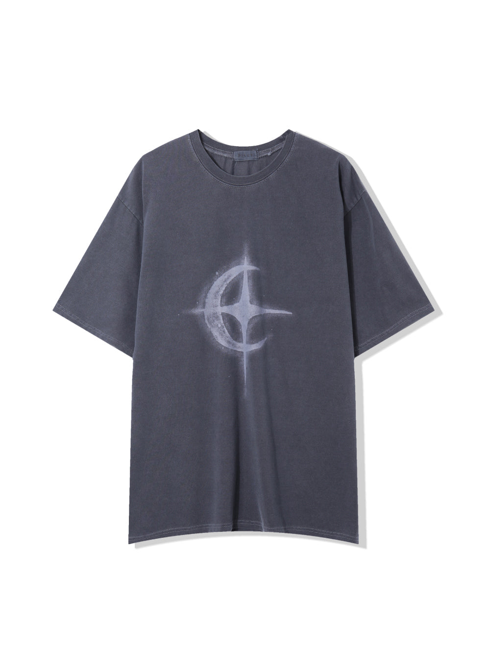 Crescent 月牙圖案 水洗 寬鬆 短袖 T恤 / 2色