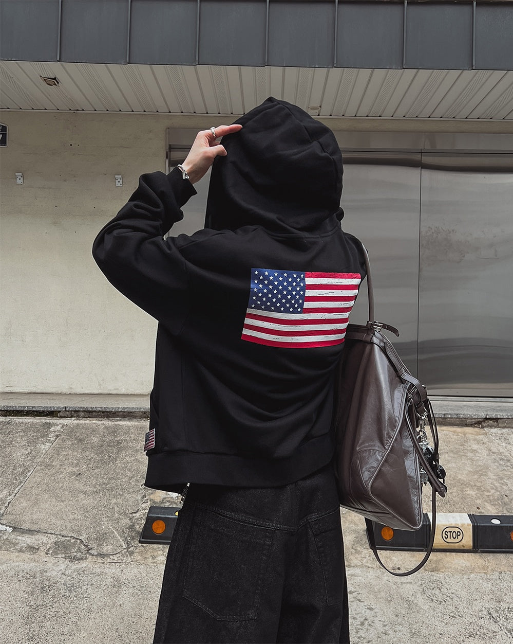 街頭 USA 美國印花 雙拉鍊 連帽 外套