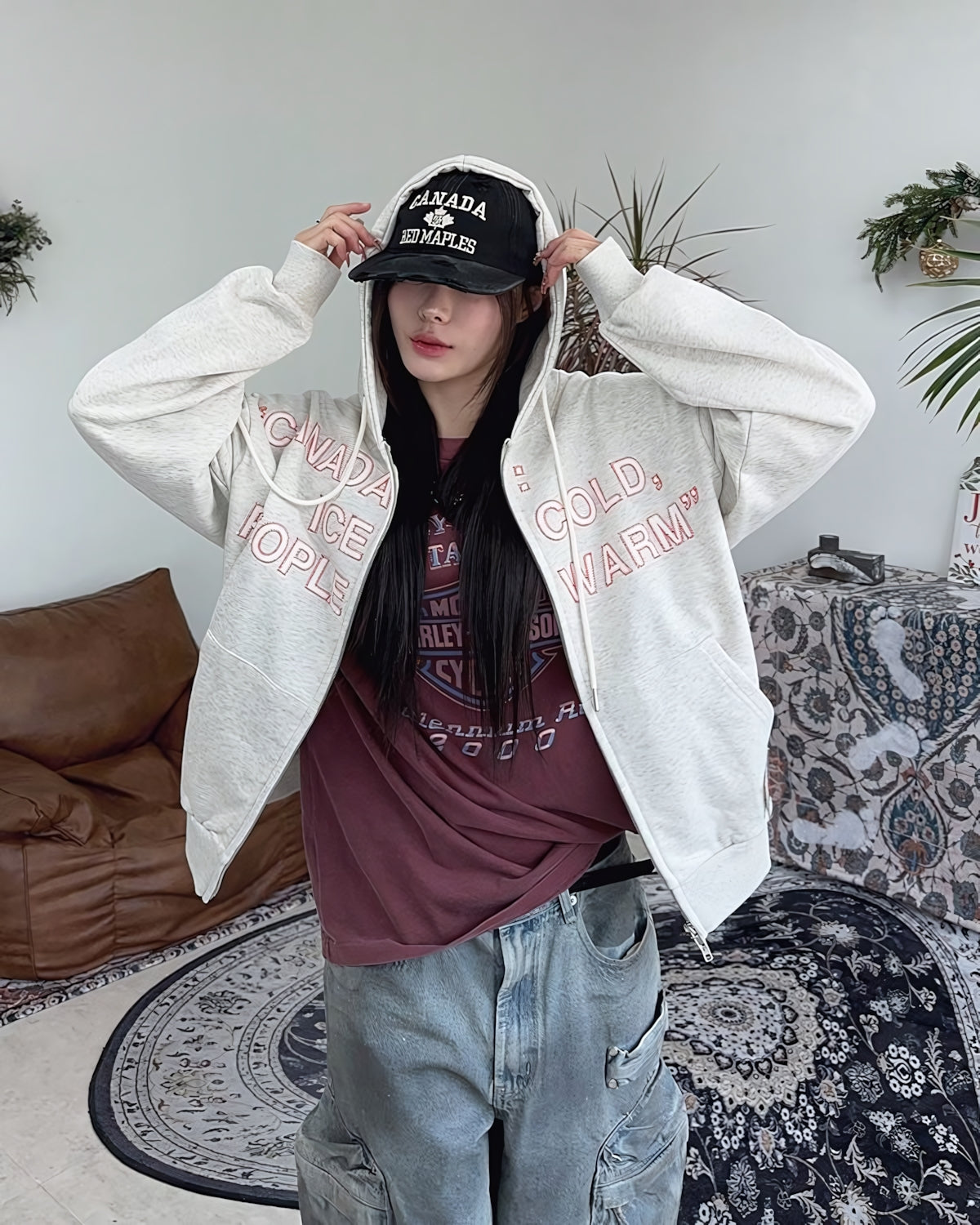 街頭 CANADA 加拿大印花 雙拉鍊 連帽 外套