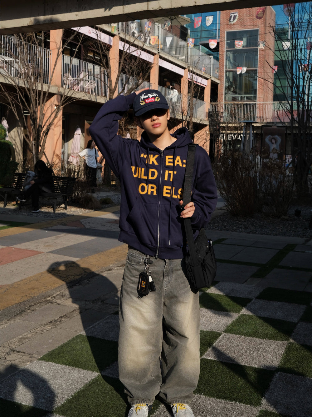 街頭 SWEDEN 瑞典印花 雙拉鍊 連帽 外套