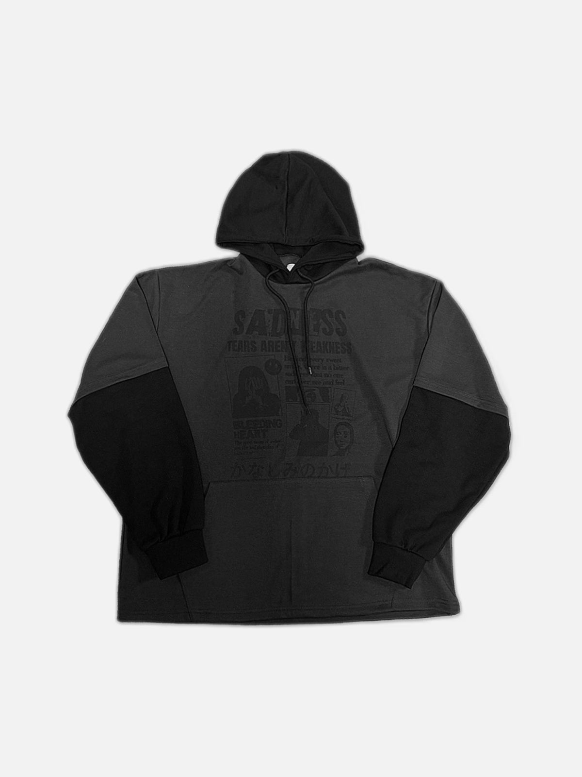 街頭 印花 拼色 假兩件 連帽 帽T / 3色