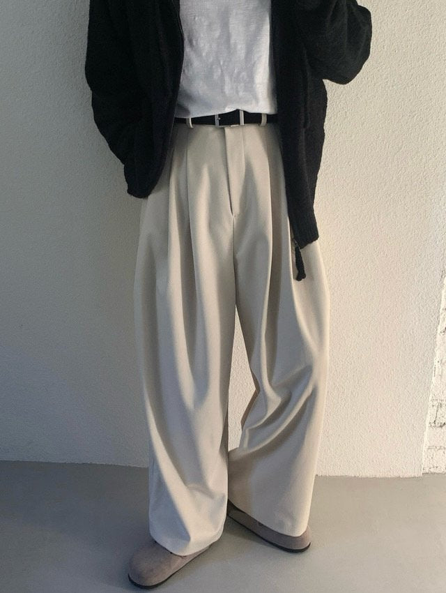 三褶 垂墜 羊毛混紡 寬版 落地 西裝褲 / 2色