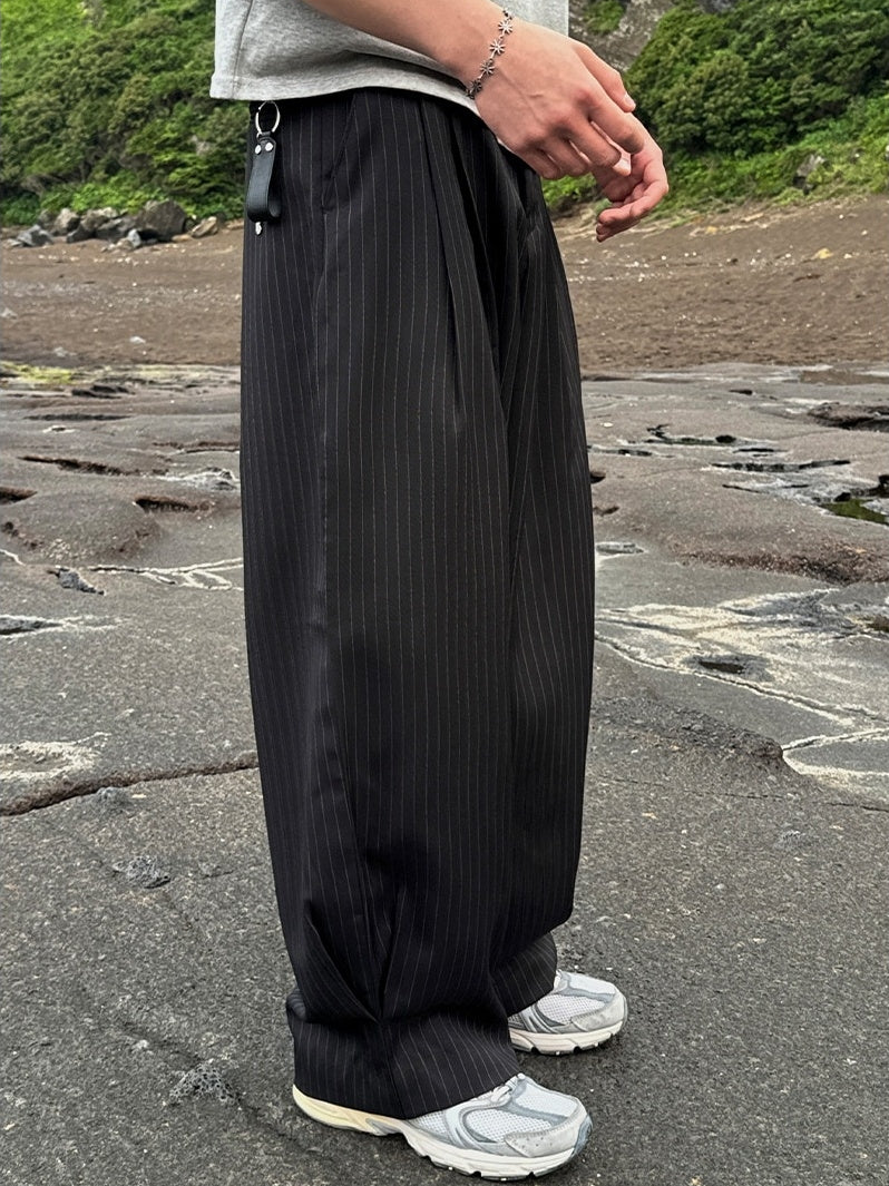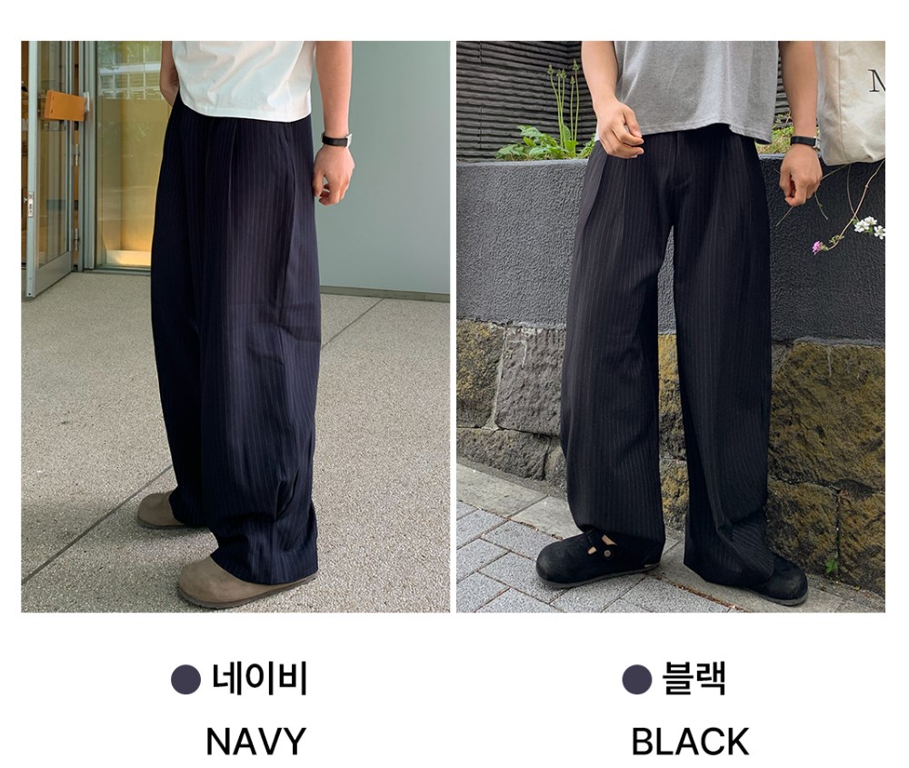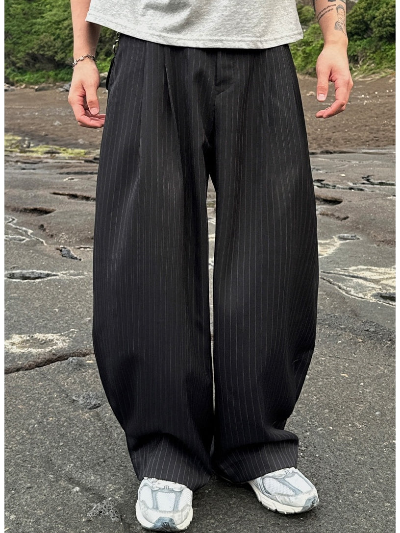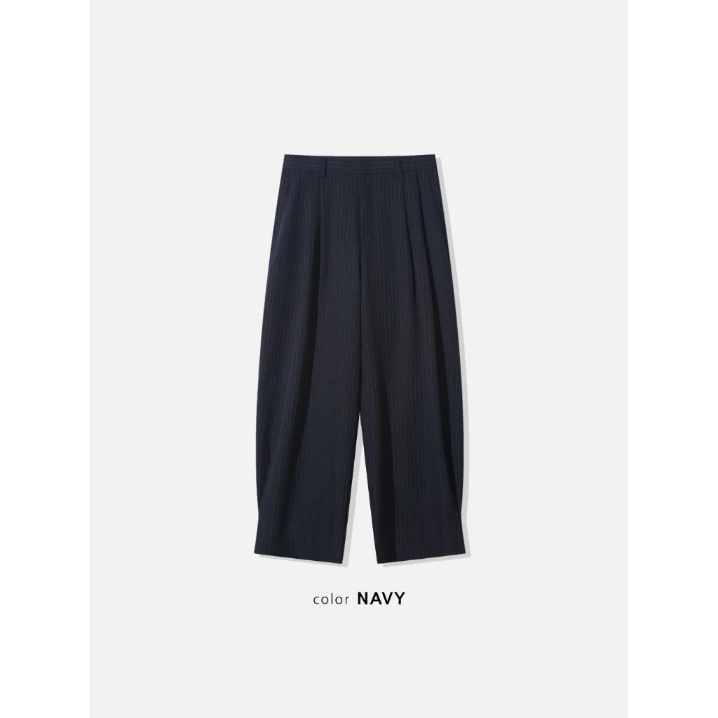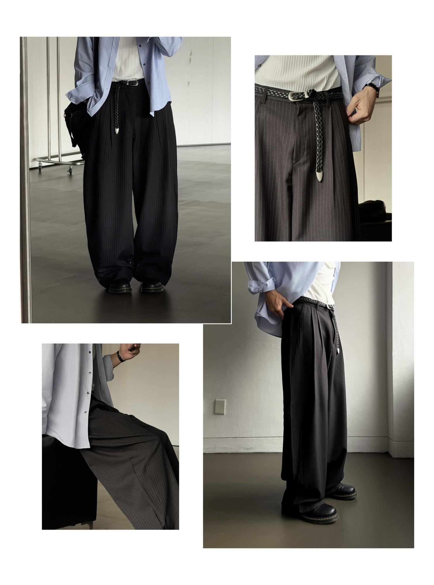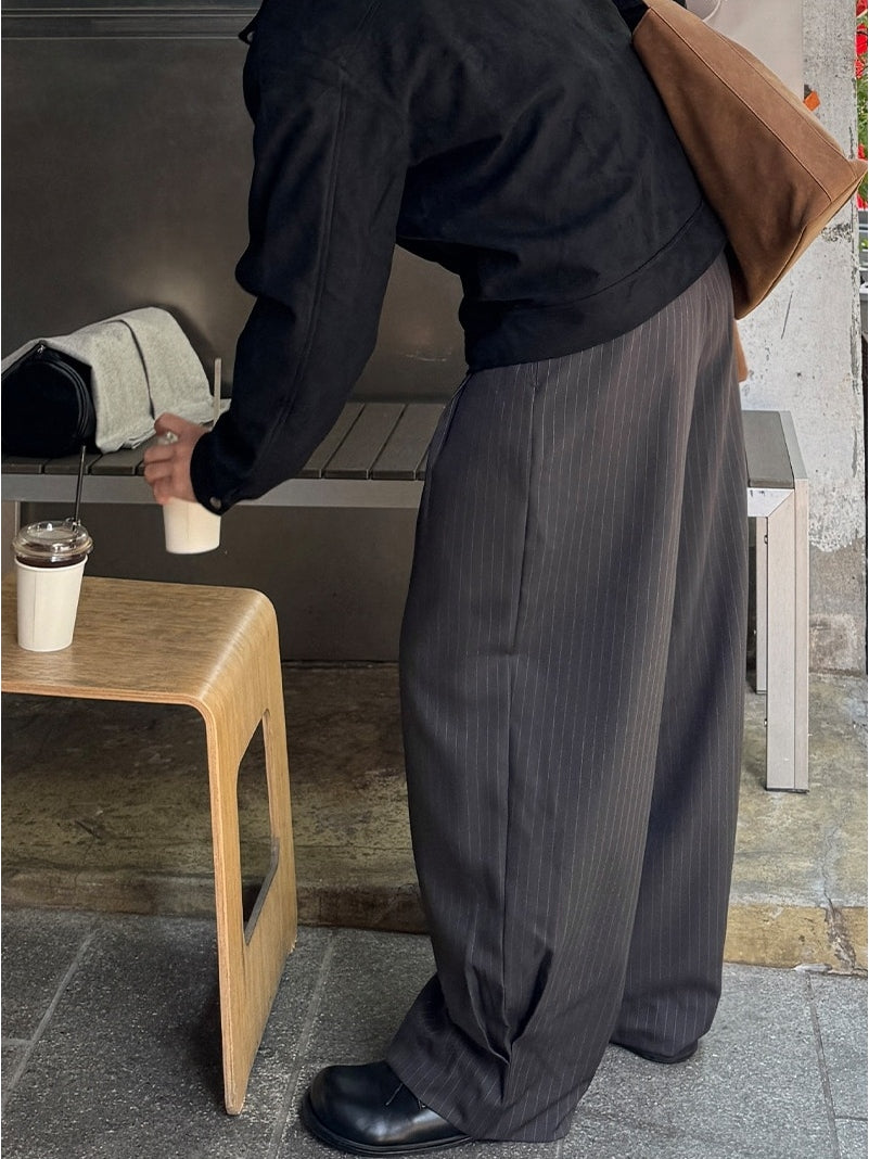 【寬版 條紋 打褶 彎刀 西裝褲 / 2 色】 - 250401