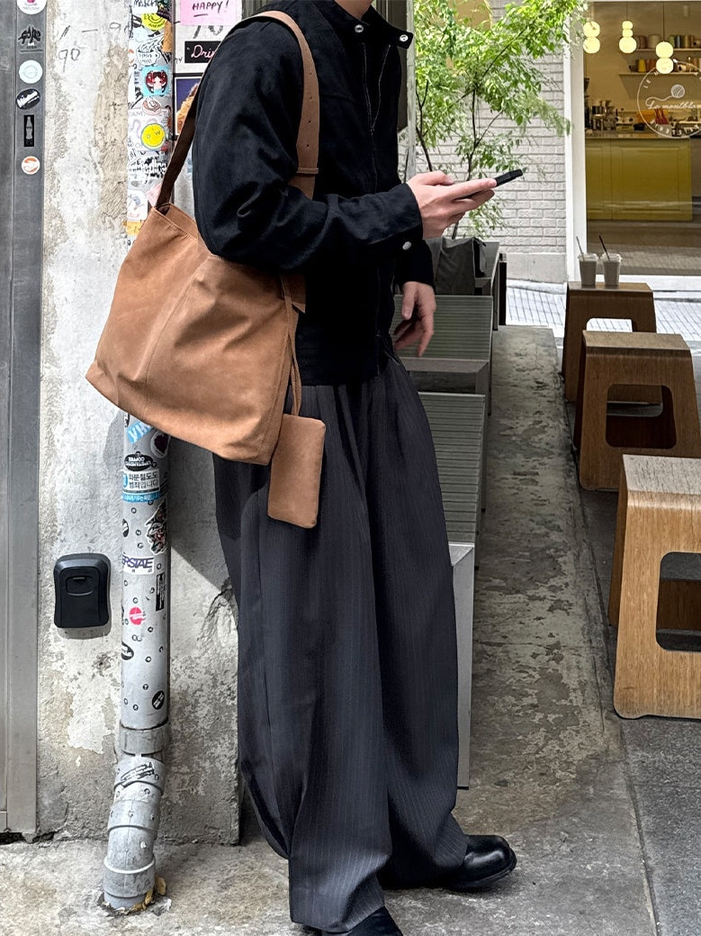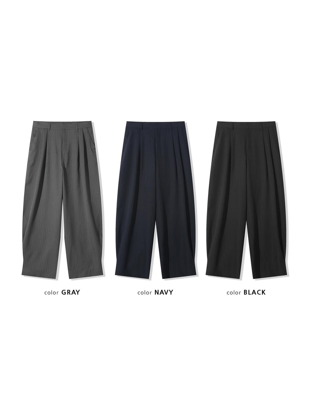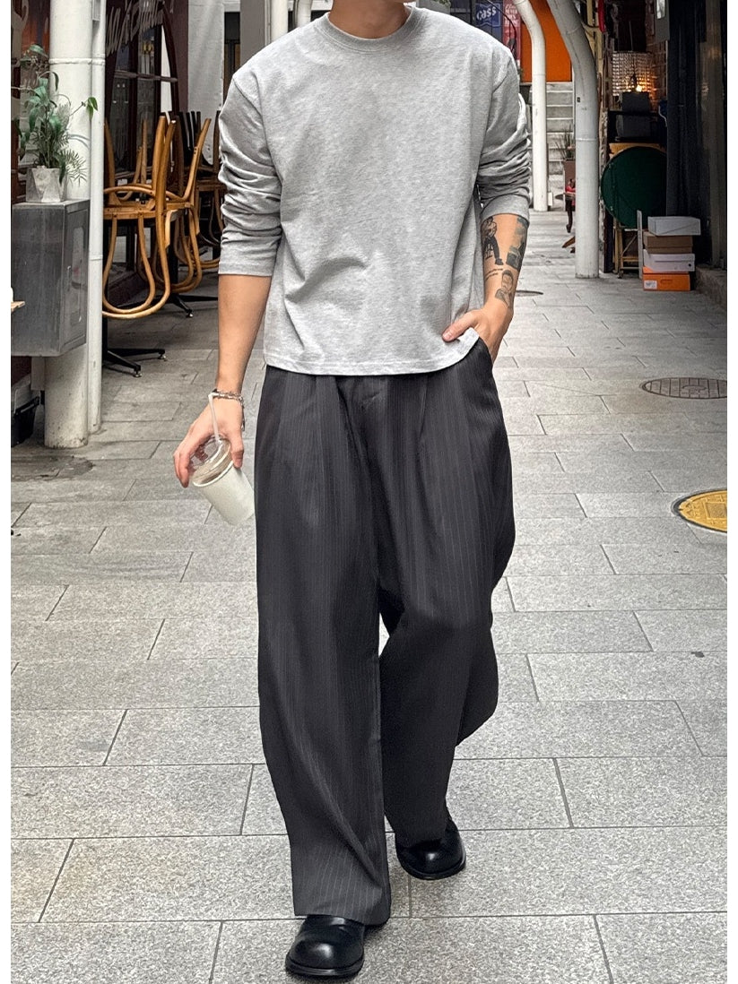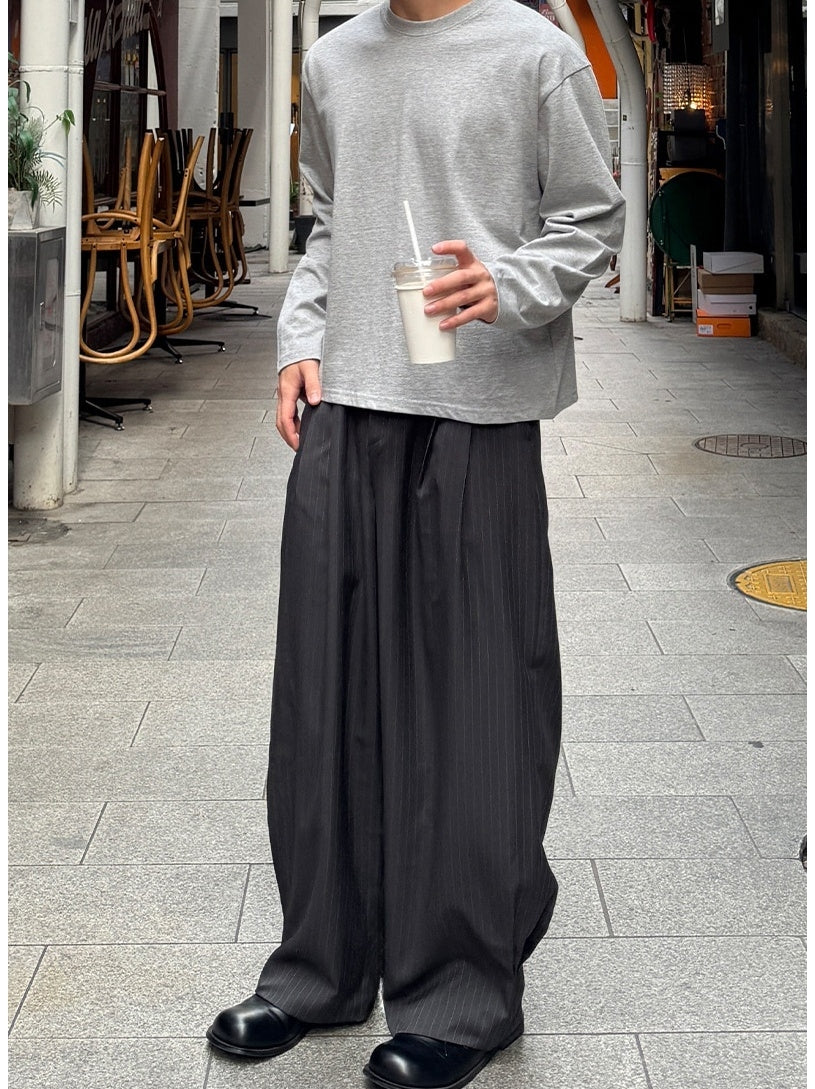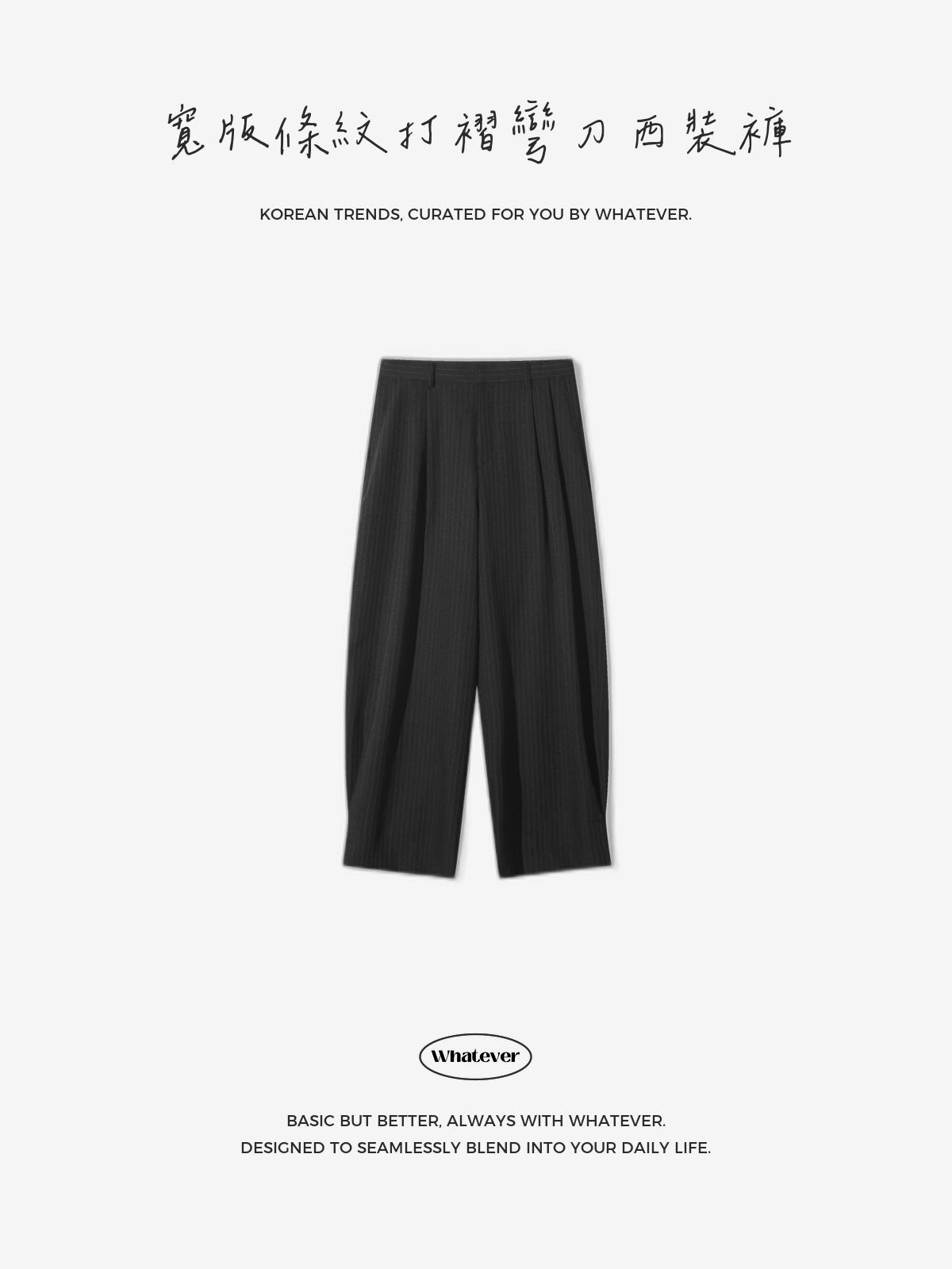 【寬版 條紋 打褶 彎刀 西裝褲 / 2 色】 - 250401