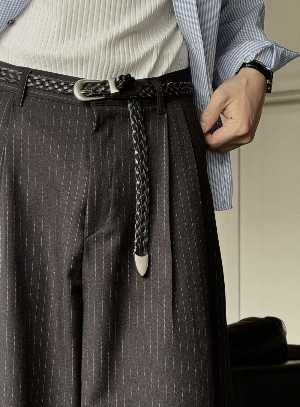 ✔ 條紋細節設計,增添造型亮點