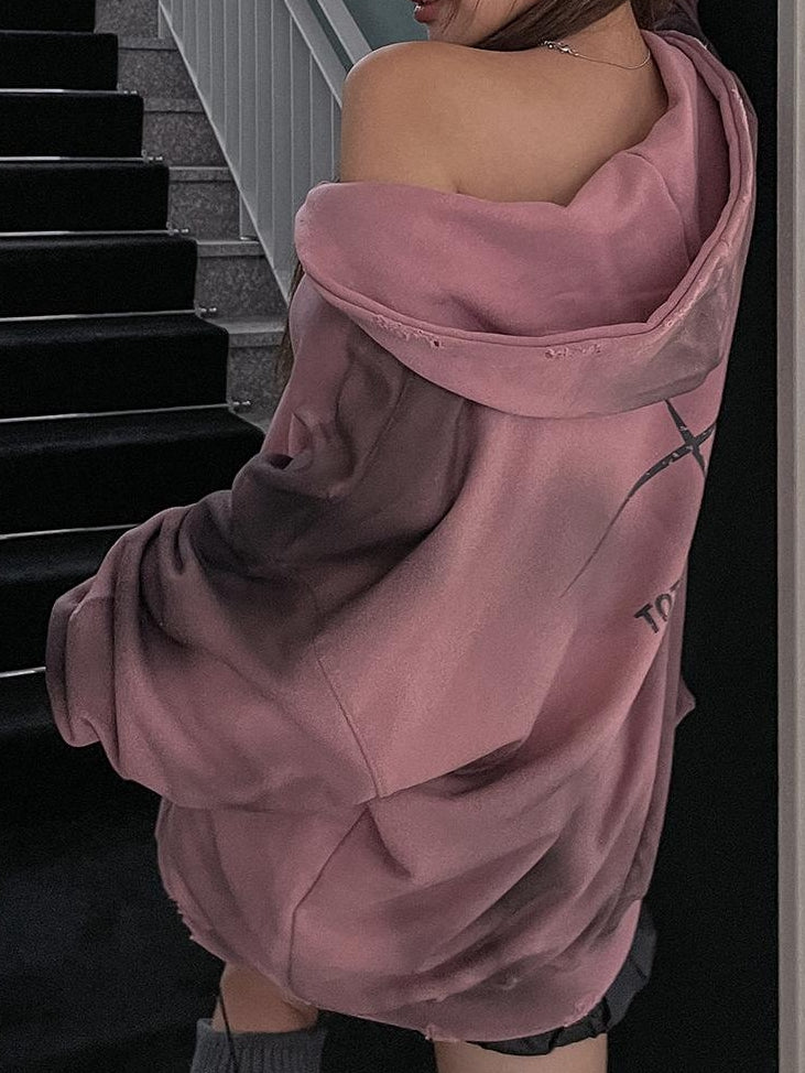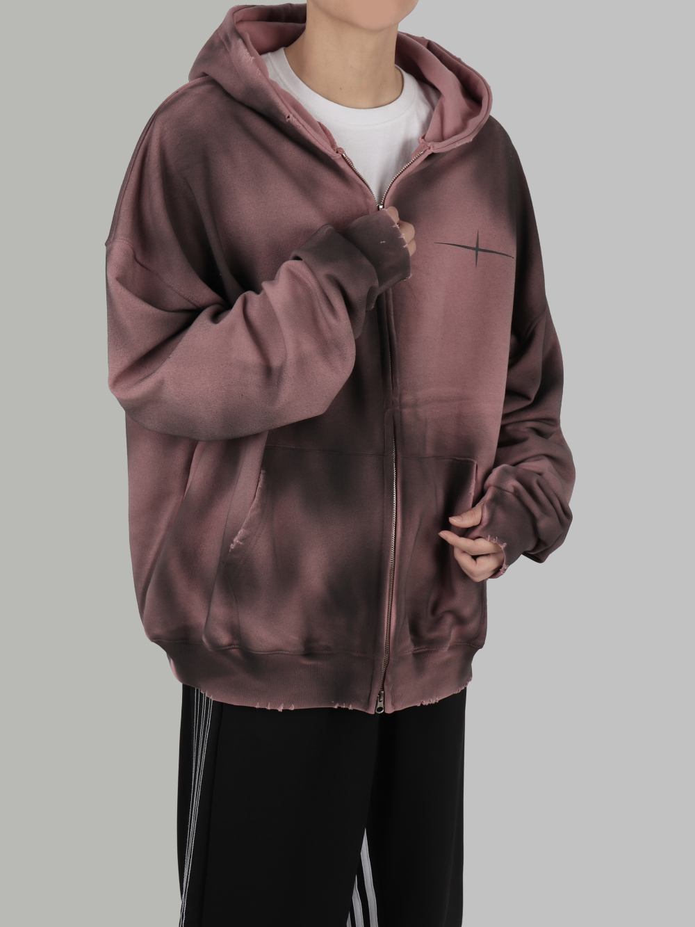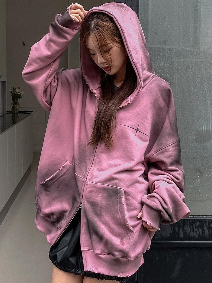 Dirty Fit 紮染 不修邊 雙拉鍊 y2k 連帽 外套 / 2色