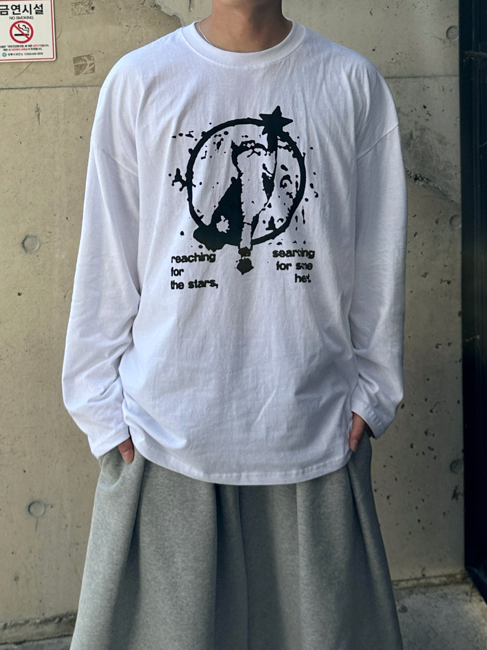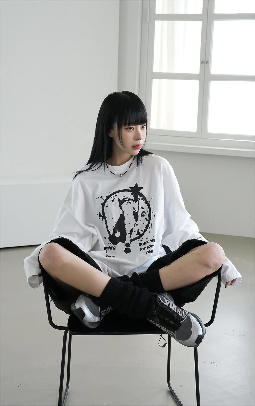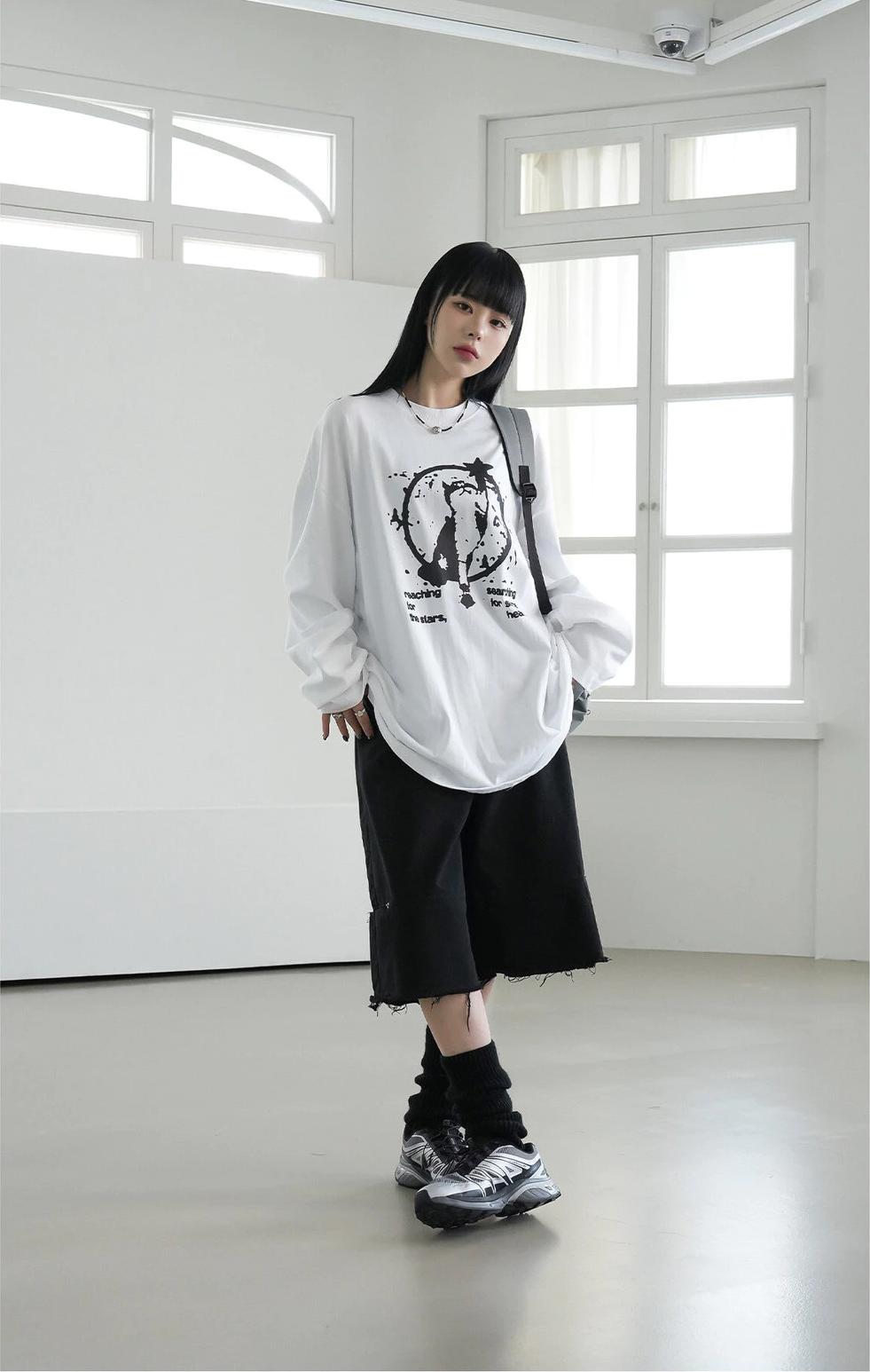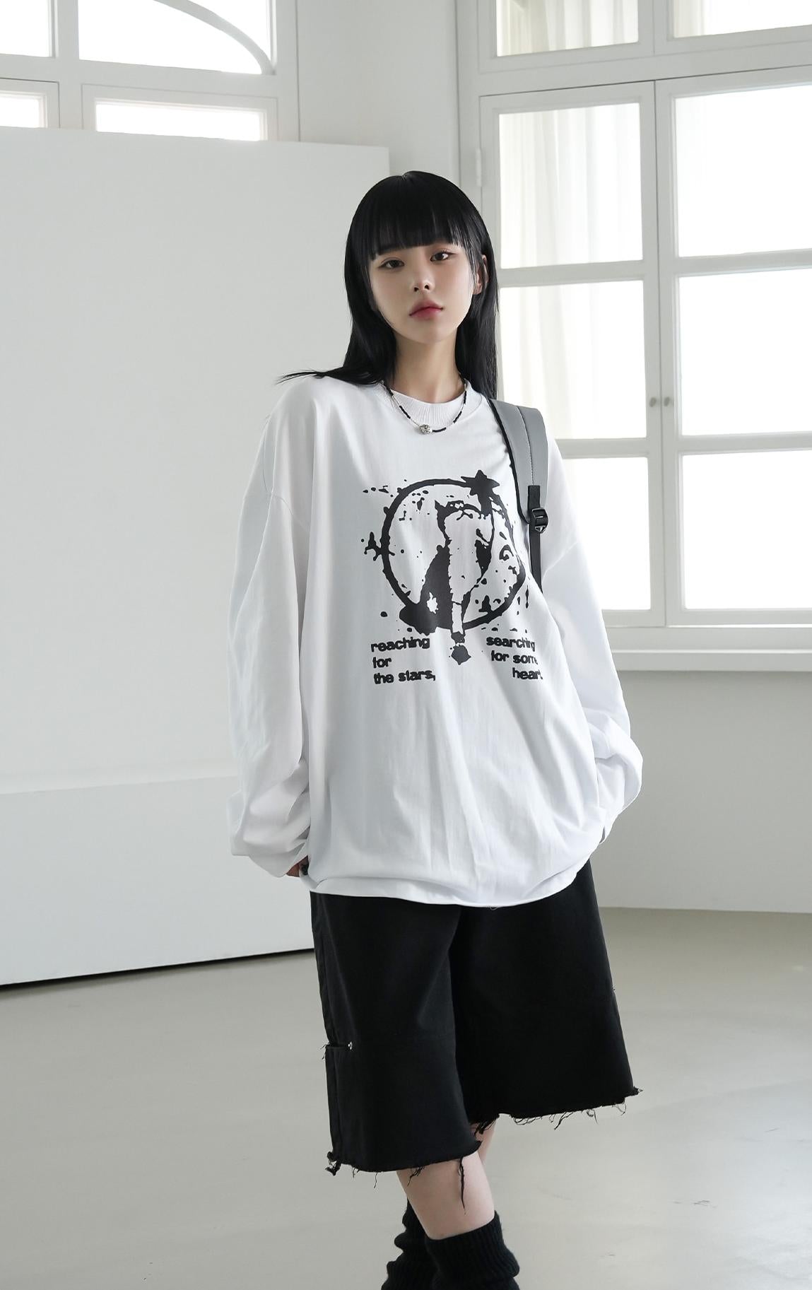 貓咪 摘星 印花 長袖 T恤 / 3色