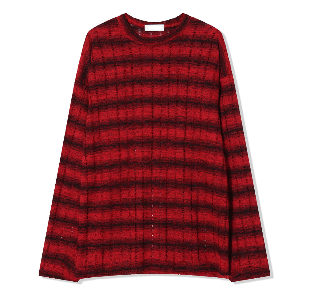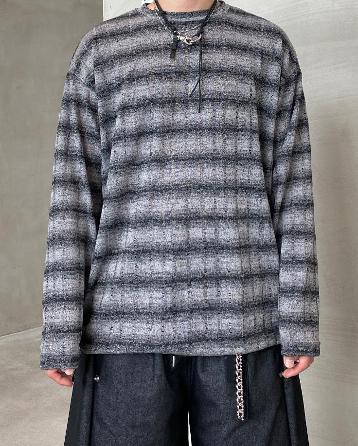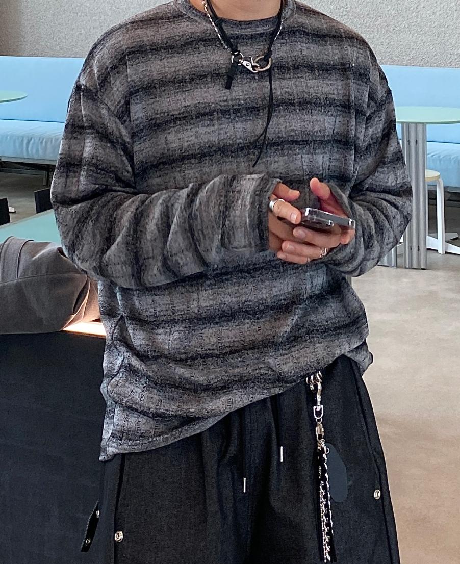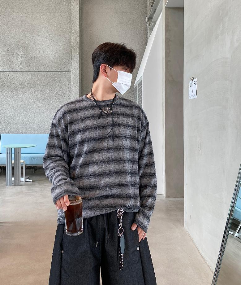 條紋 寬鬆 針織 薄長袖 上衣 / 3色