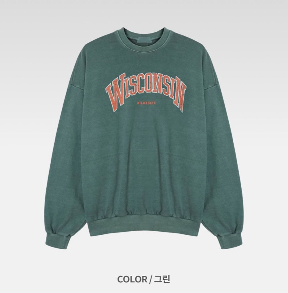 WISCONSIN 顏料染 大學T / 2色