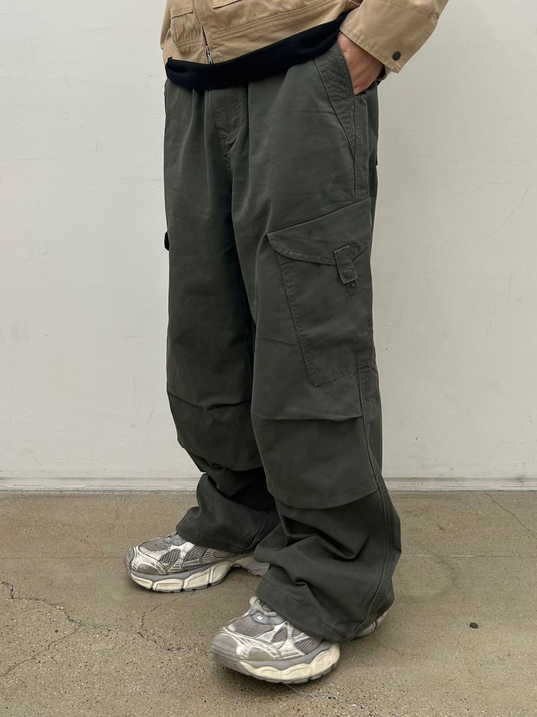 寬鬆 按扣 大口袋 卡其 工裝褲 / 3色