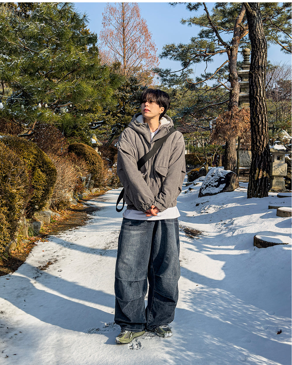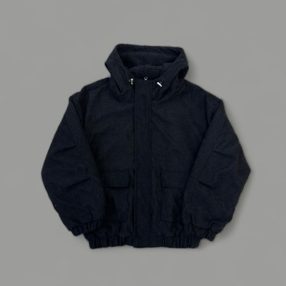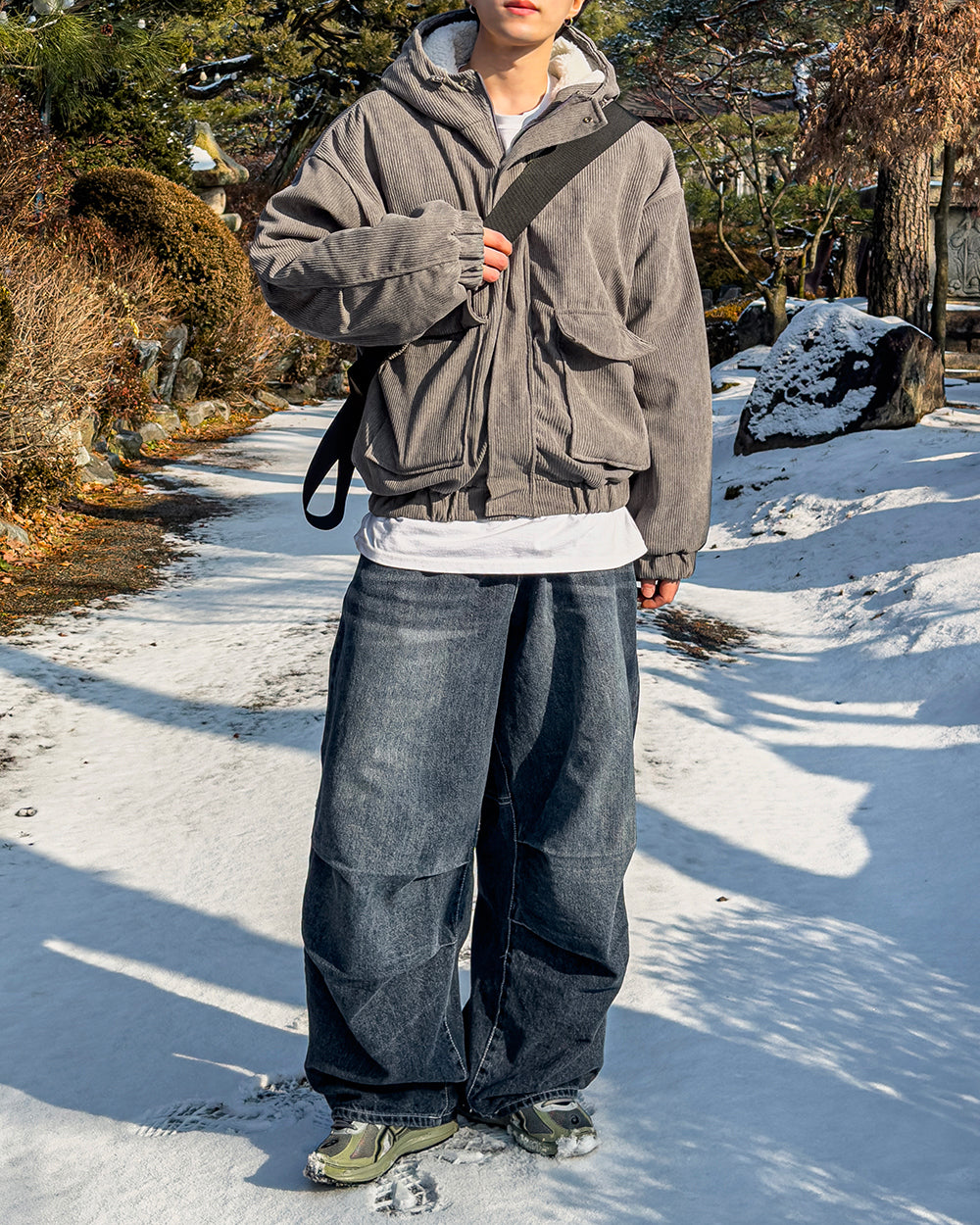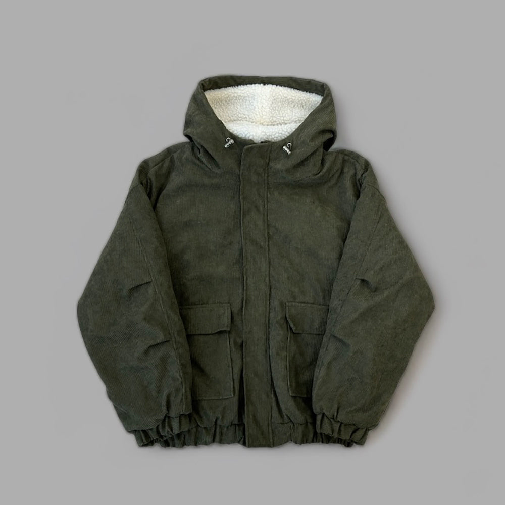 。這款燈芯絨材質的的刷毛連帽外套,擁有休閒感十足的剪裁!