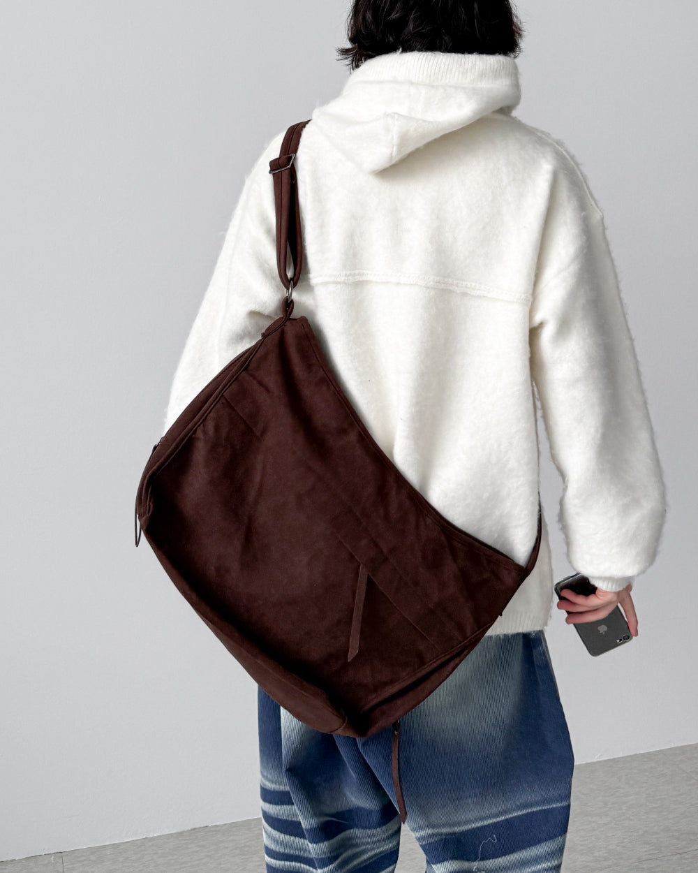 簡約 質感 麂皮 拉鍊 斜背包 / 2色