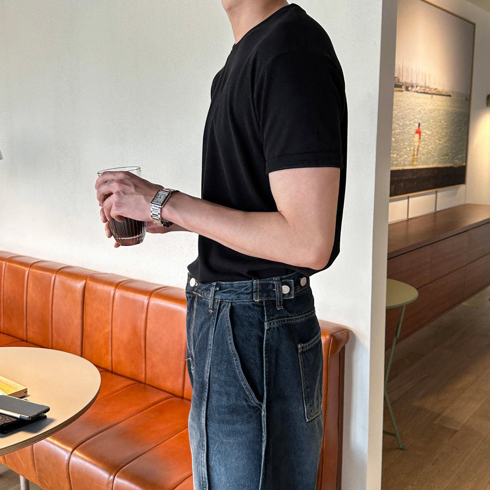 涼感 羅紋 合身 針織 短T / 10色
