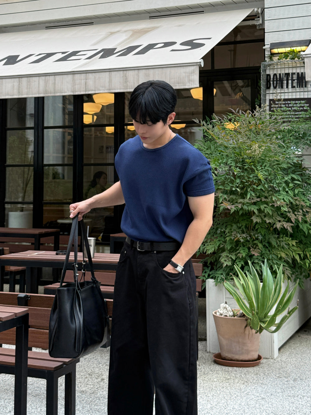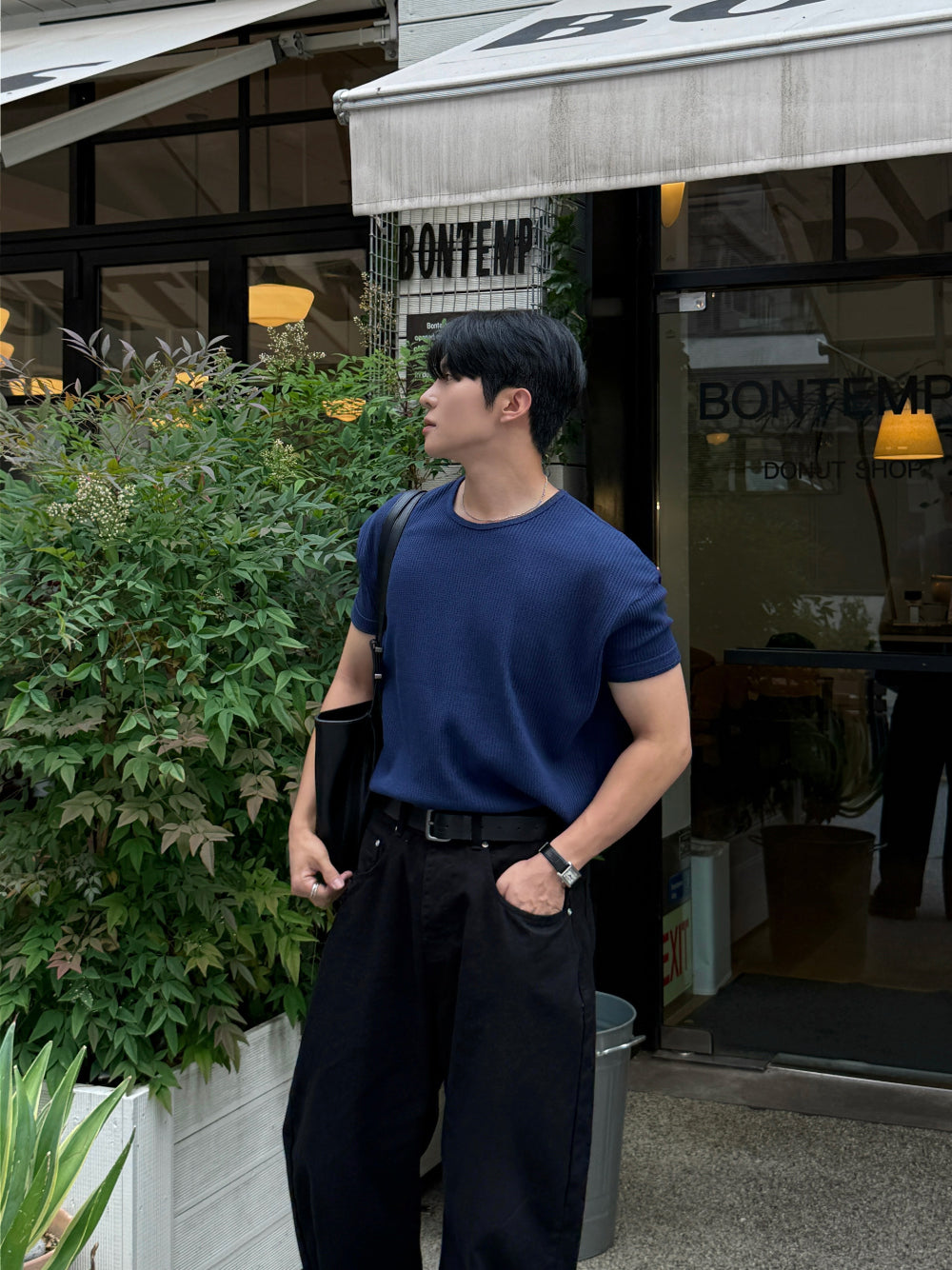 - Waffle 布料,讓簡單T恤也有細節感