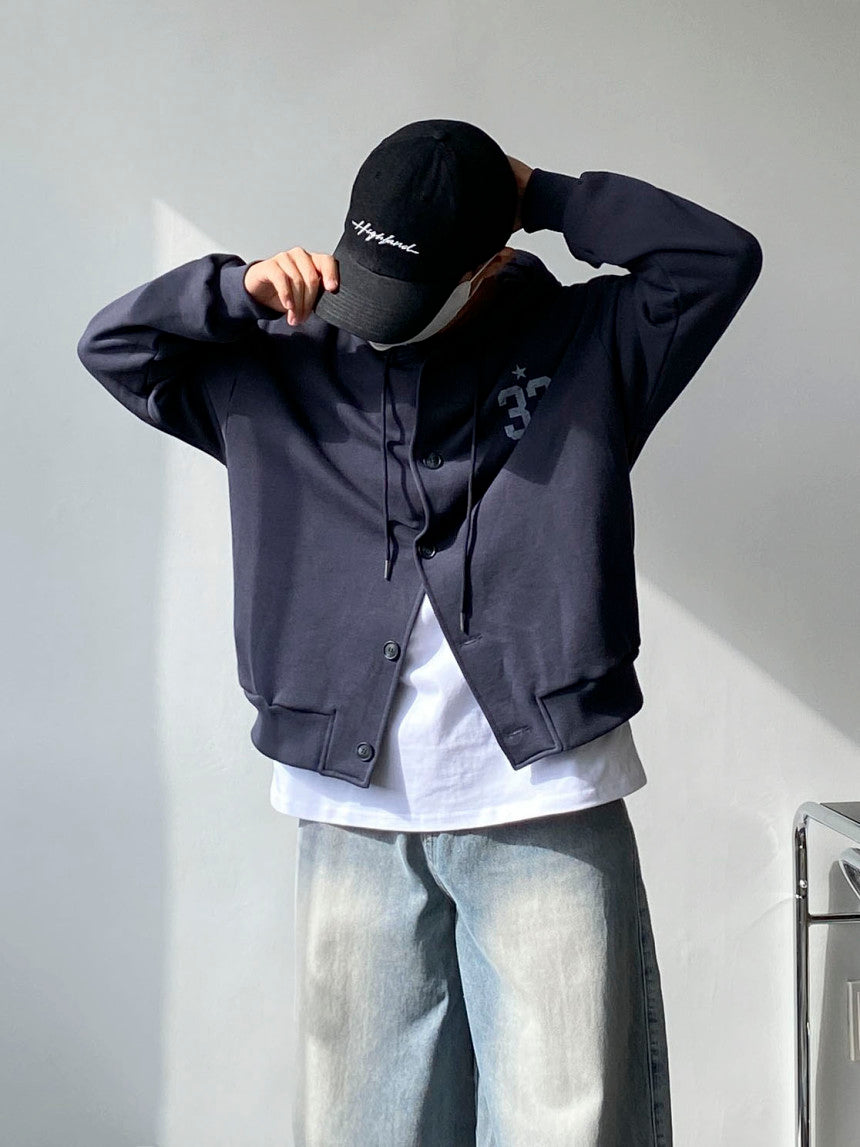 33 斑駁刺繡 鈕扣 開襟 連帽衫 / 3色