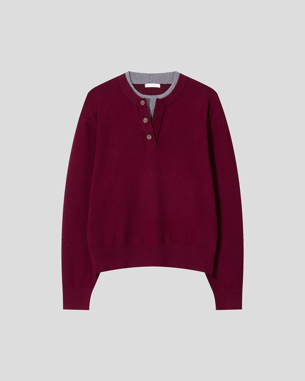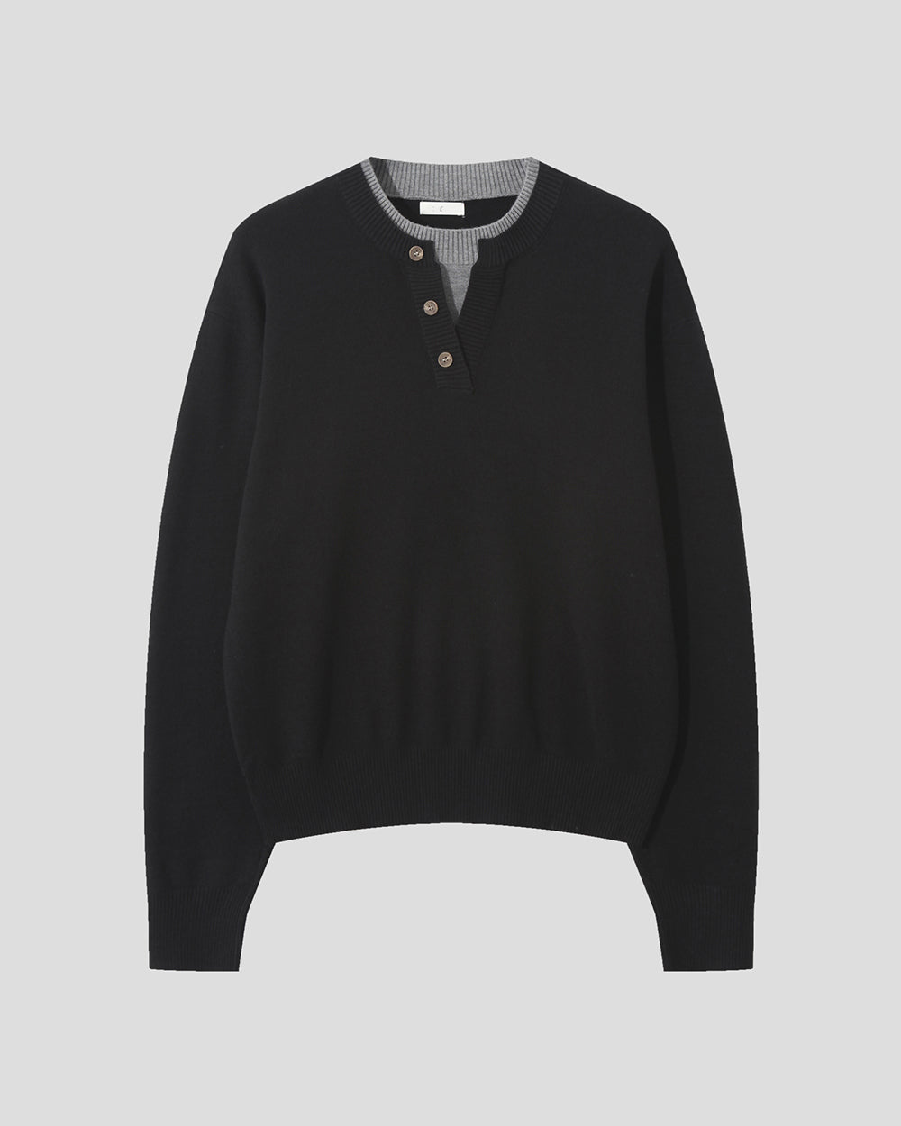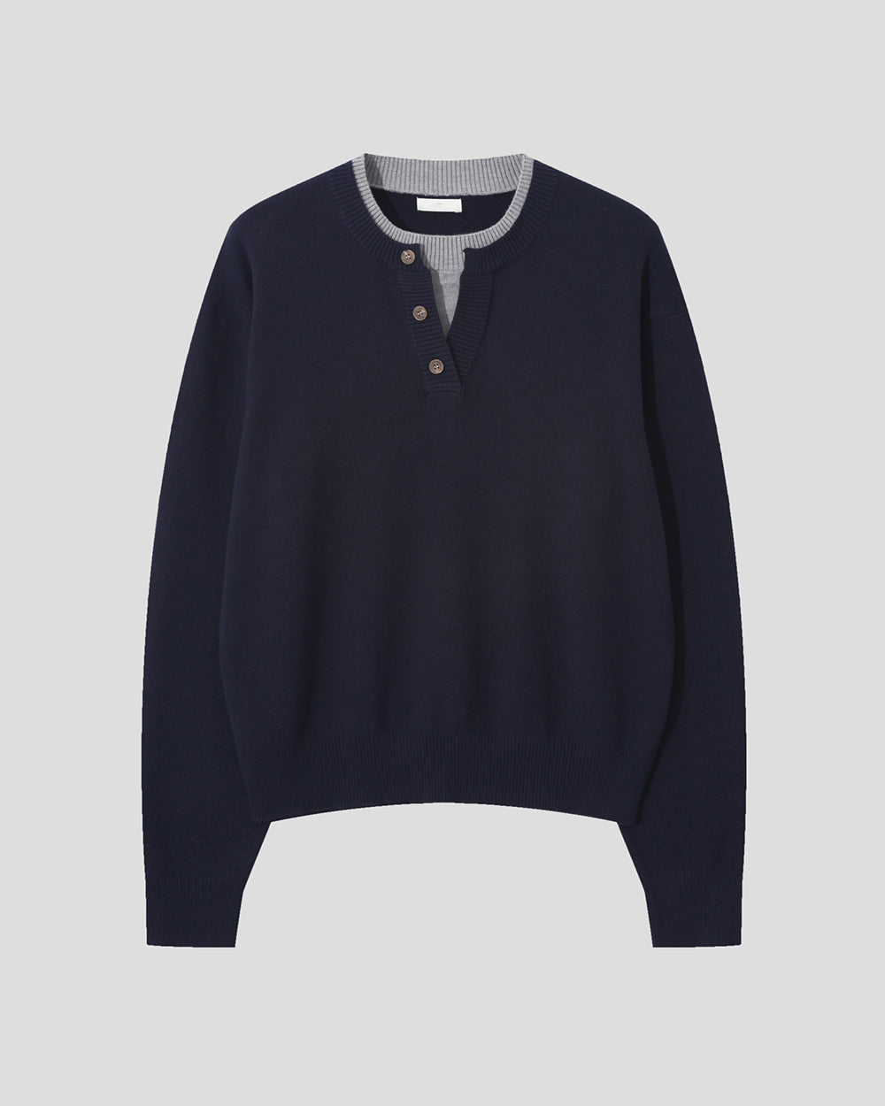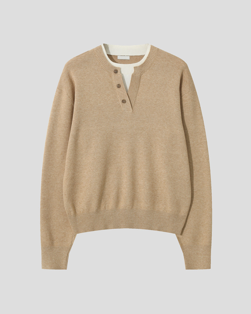 層次 假兩件 亨利領 寬鬆 針織衫 / 6色