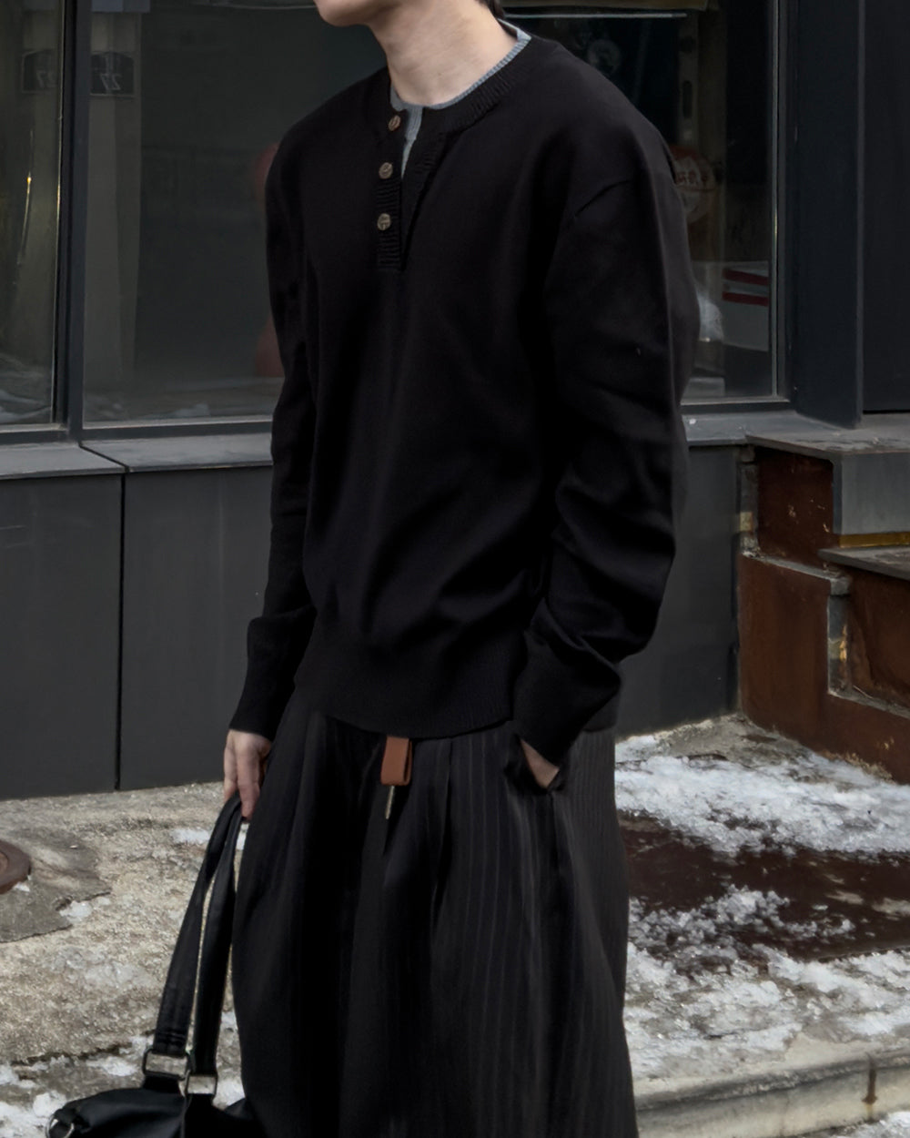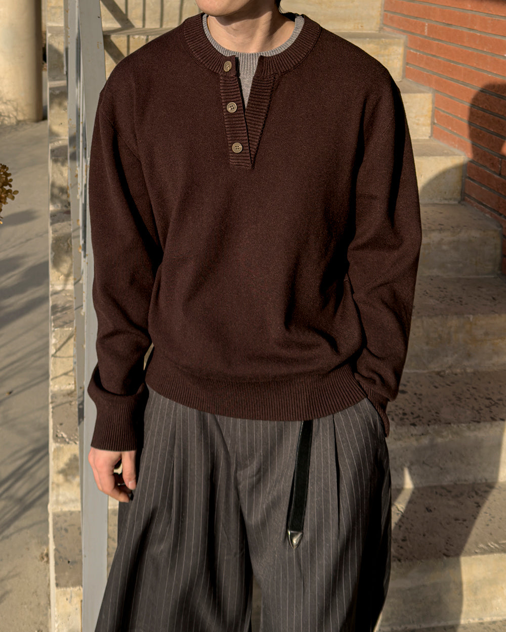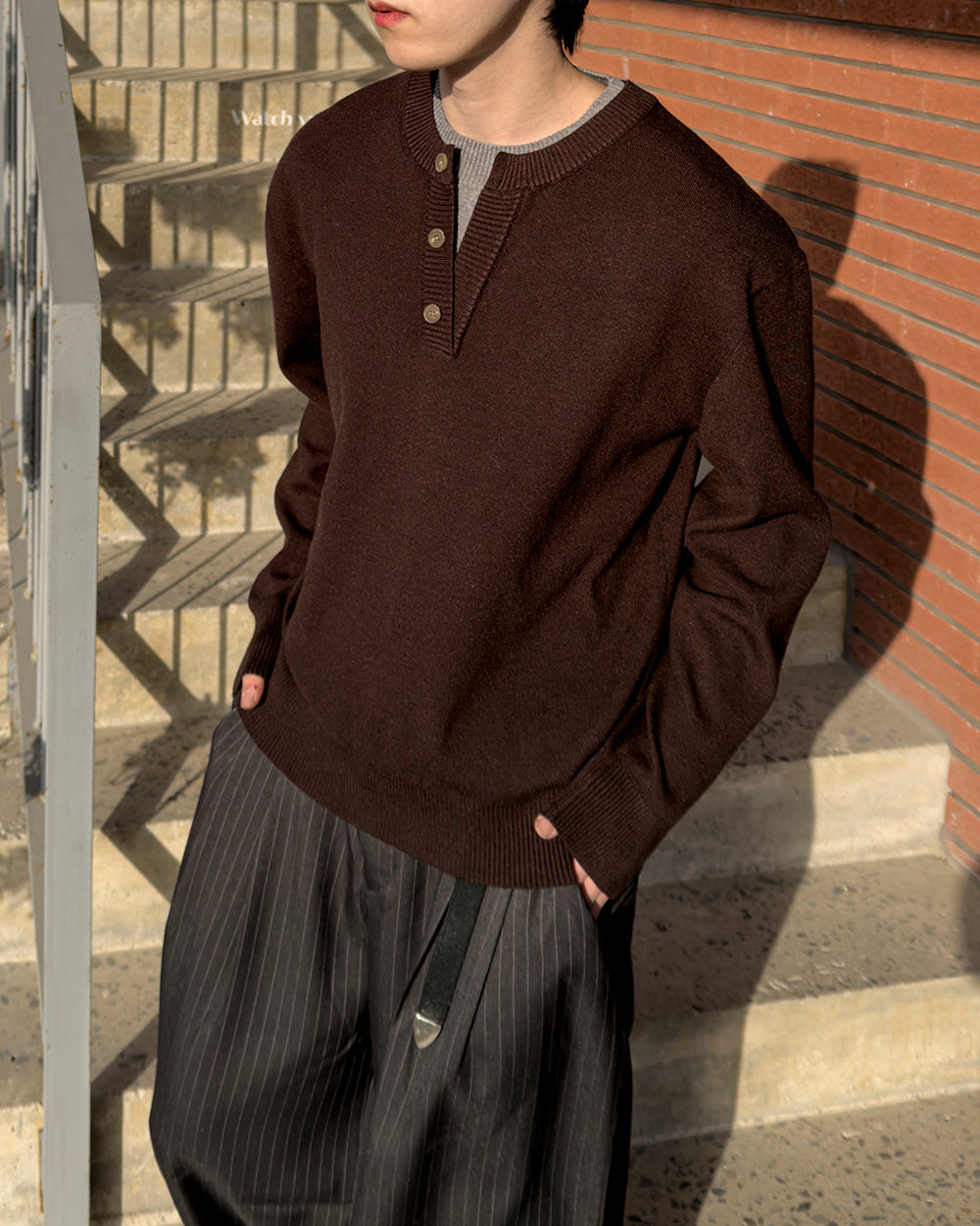 • 經典亨利領三扣設計,低調帶出休閒氛圍
